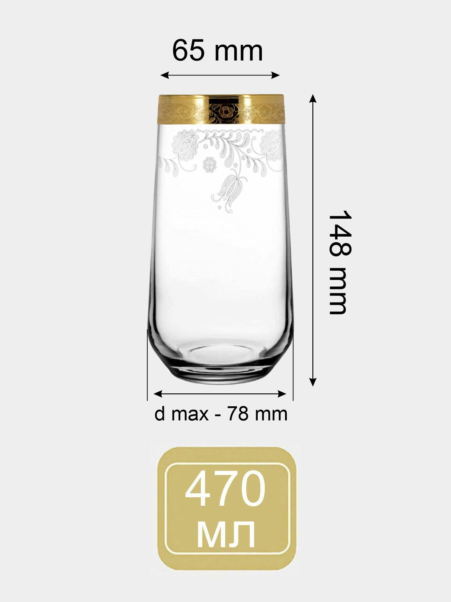 Набор стаканов с алмазной гравировкой для коктейлей 470 мл, 6 шт.