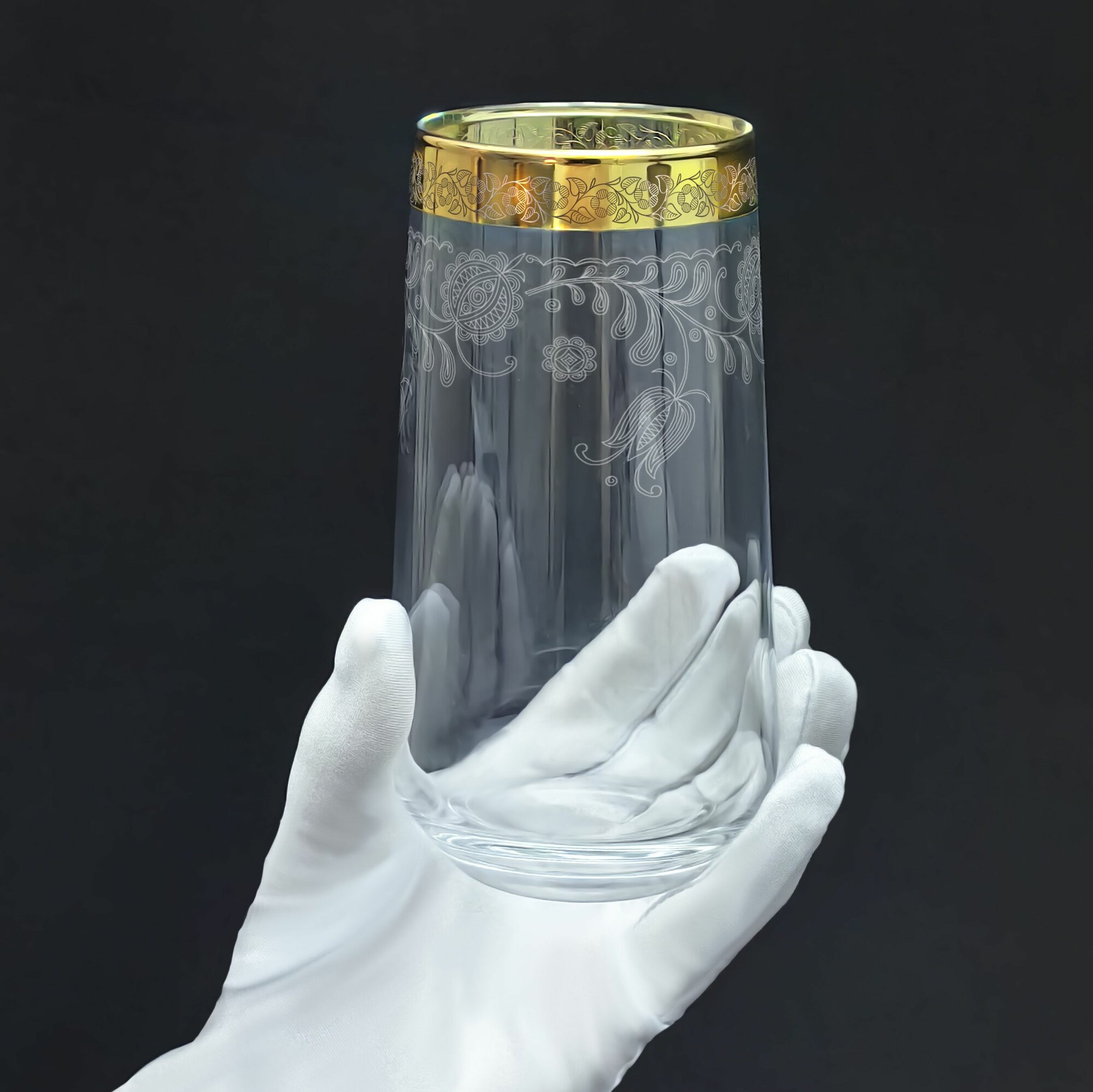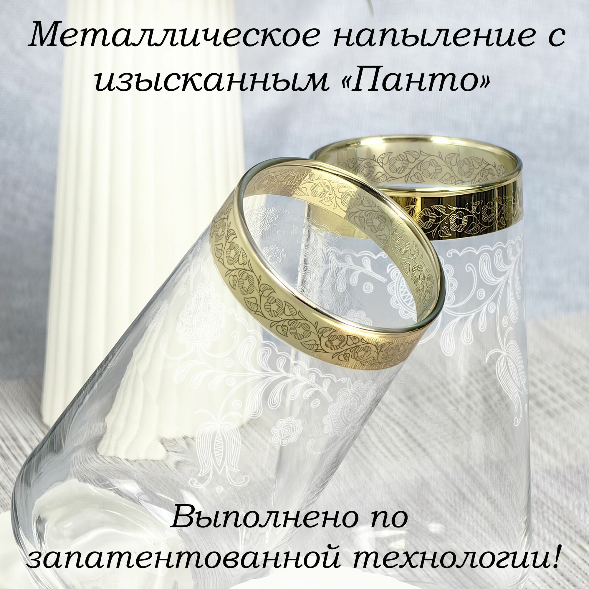 Набор высоких стаканов в подарочной упаковке с алмазной гравировкой для воды PROMSIZ барокко, 470 мл, 6 шт.