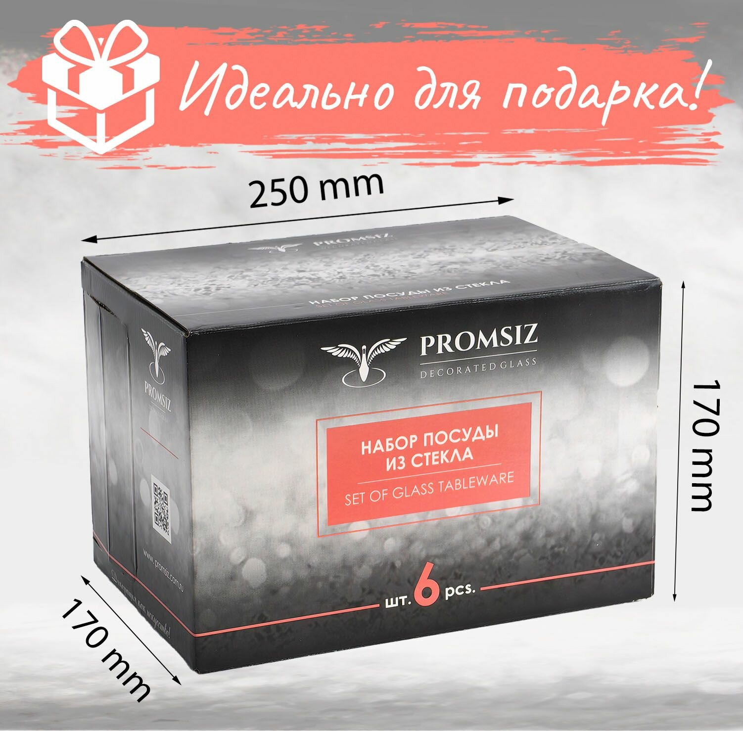 Подарочный набор стаканов для виски с алмазной гравировкой PROMSIZ сюрприз, 390 мл, 6 шт.