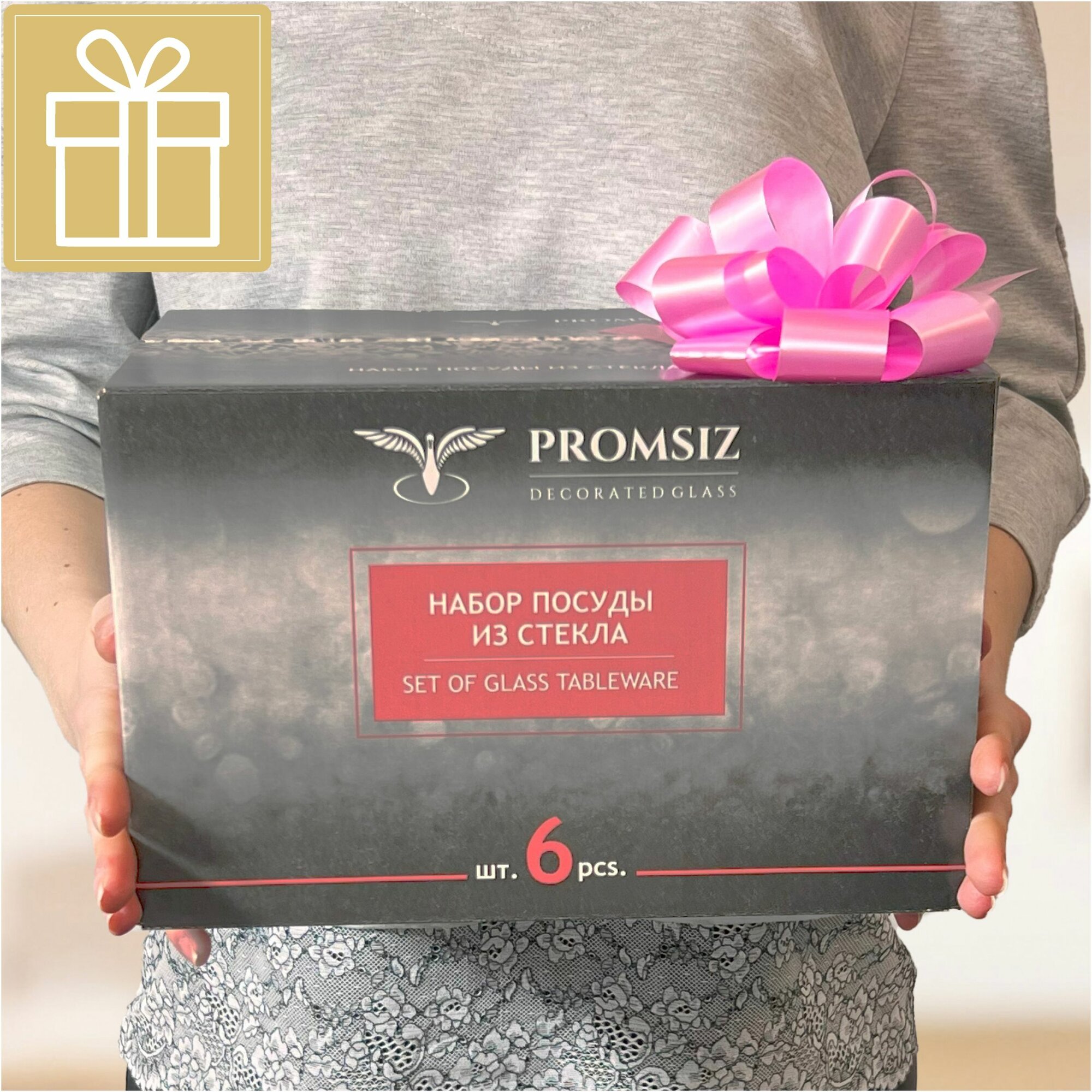 Подарочный набор стаканов для виски с алмазной гравировкой PROMSIZ сюрприз, 390 мл, 6 шт.