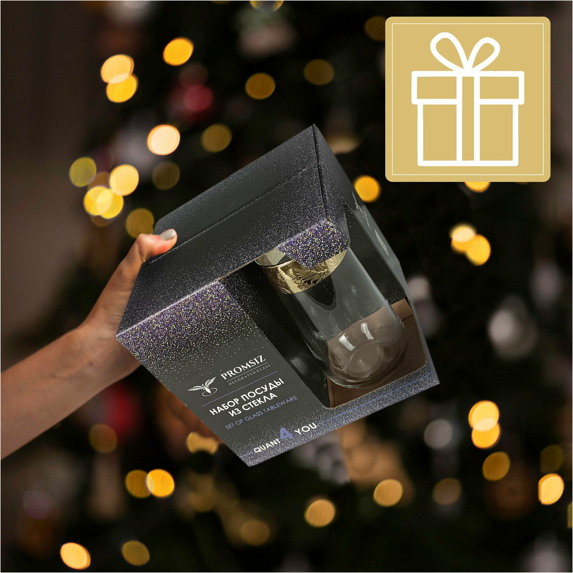 Подарочный набор стаканов для виски с алмазной гравировкой PROMSIZ сюрприз, 390 мл, 6 шт.