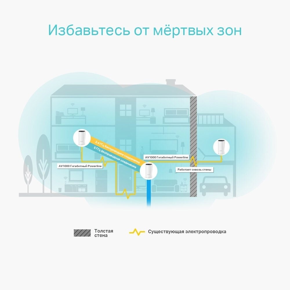 TP-Link DECO P9(3-PACK) AC1200 + AV1000 Домашняя гибридная Mesh Wi-Fi система