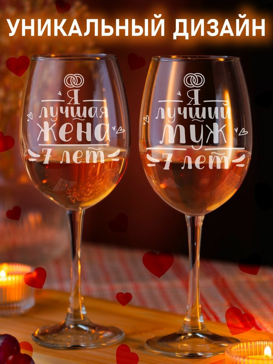 Купить Набор бокалов для вина с гравировкой подарок на годовщину свадьбы 7 лет