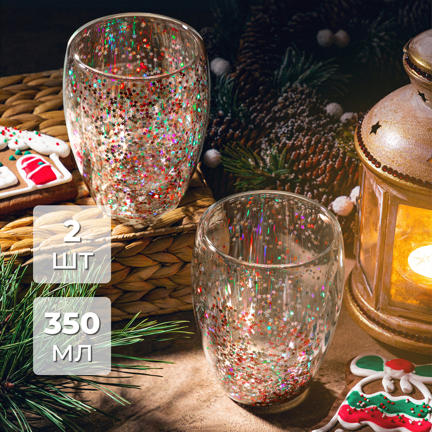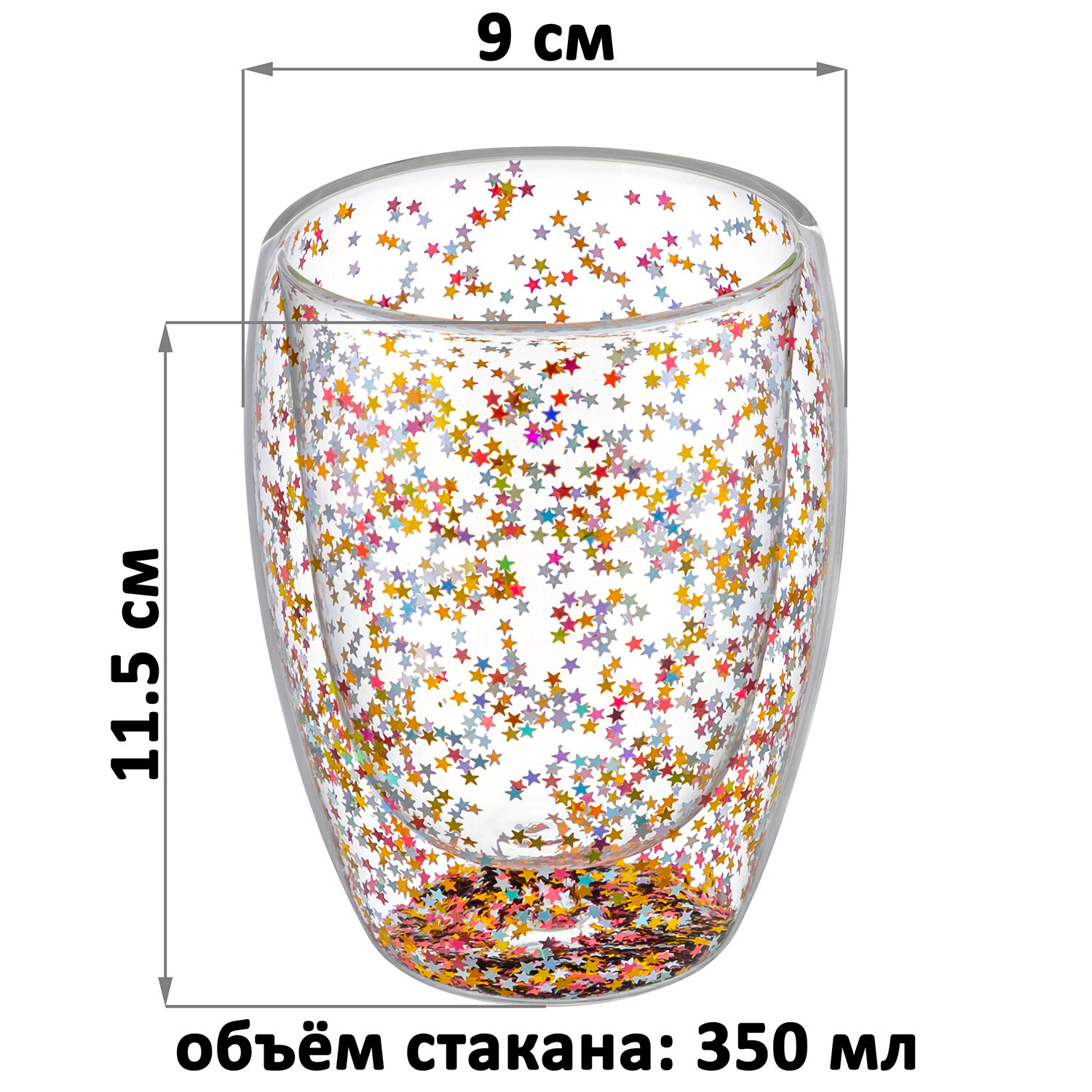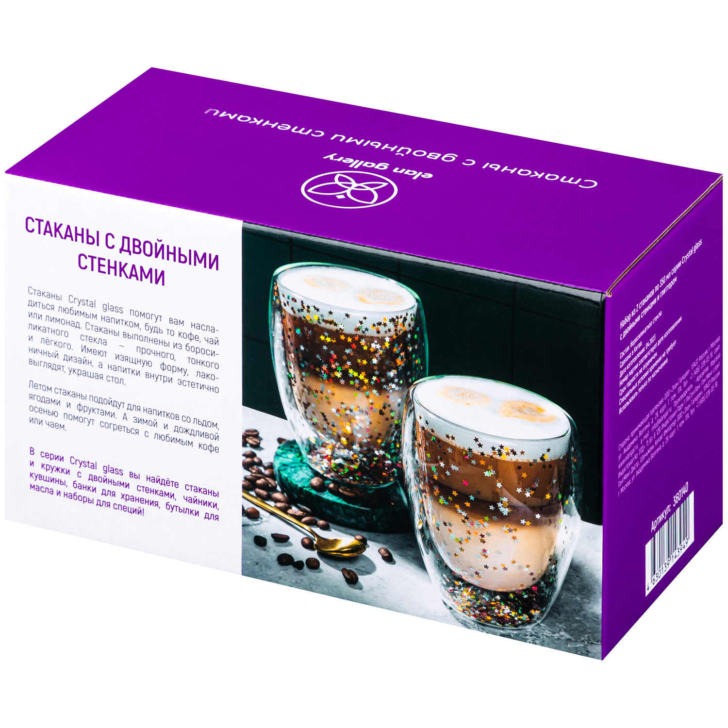 Набор 2-х стаканов 350 мл 9х9х11,5 см Elan Gallery Crystal glass, с двойными стенками+ декор из глиттера интересное: