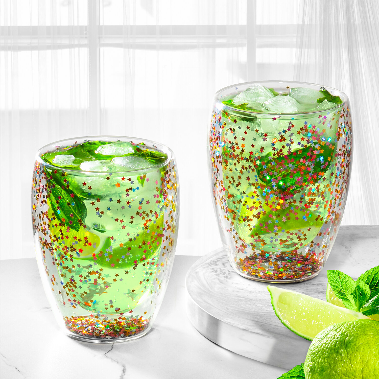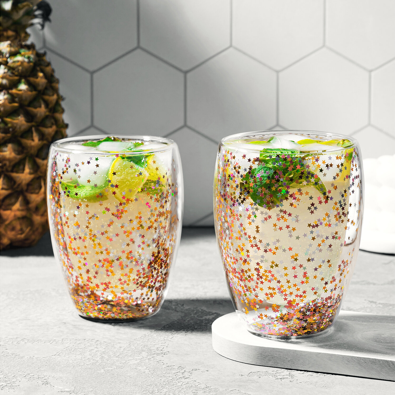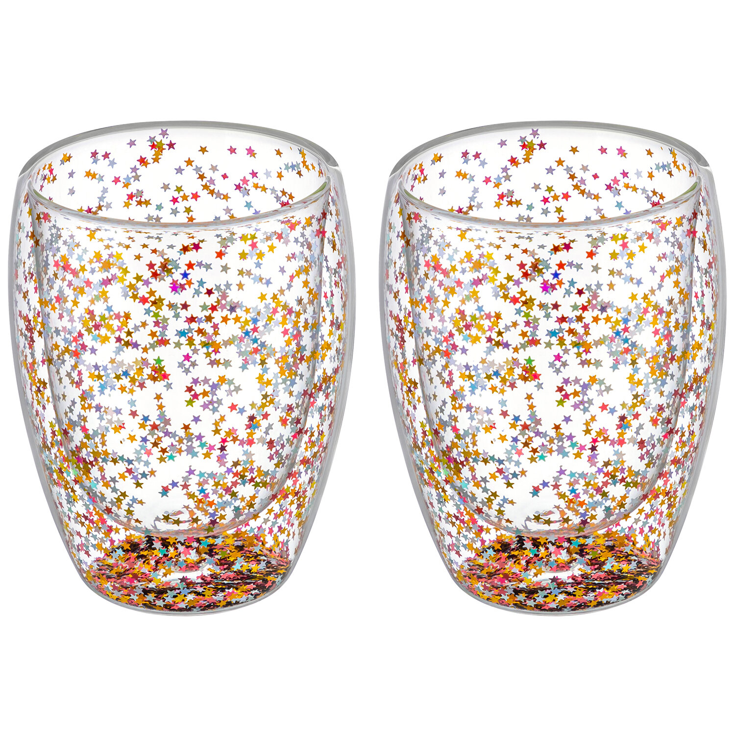 Набор 2-х стаканов 350 мл 9х9х11,5 см Elan Gallery Crystal glass, с двойными стенками+ декор из глиттера интересное: