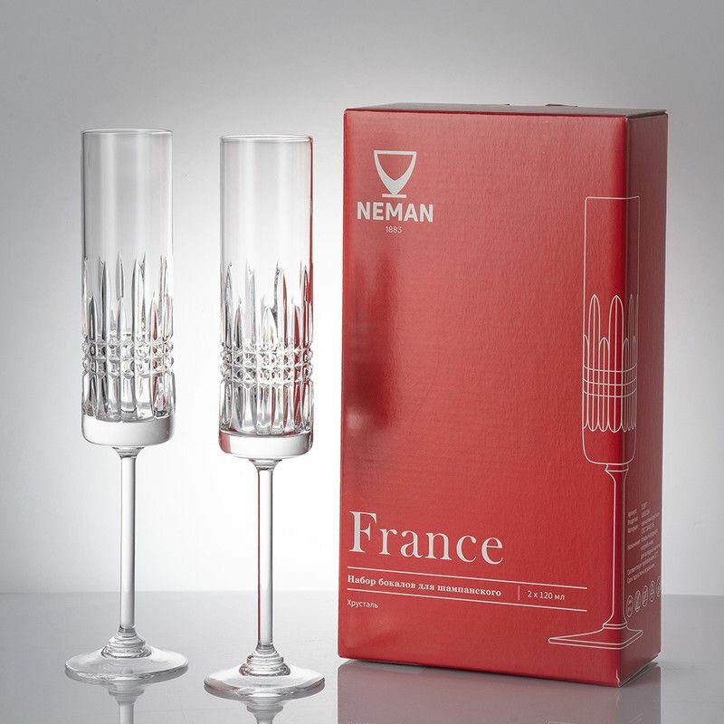 Бокалы хрустальные для шампанского / игристых вин / коктейлей - 120 мл, набор 2 шт, Неман серия "France", 11807 1000/206 УП интересное: