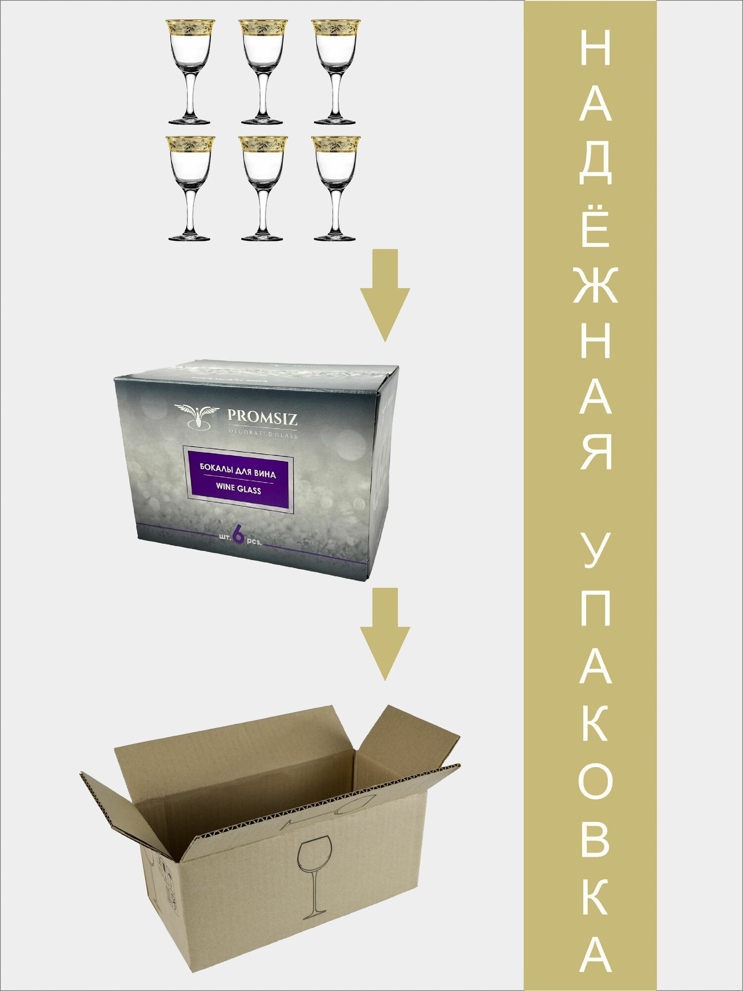 Подарочный набор бокалов для вина с алмазной гравировкой PROMSIZ канада, 240 мл, 6 шт. интересное: