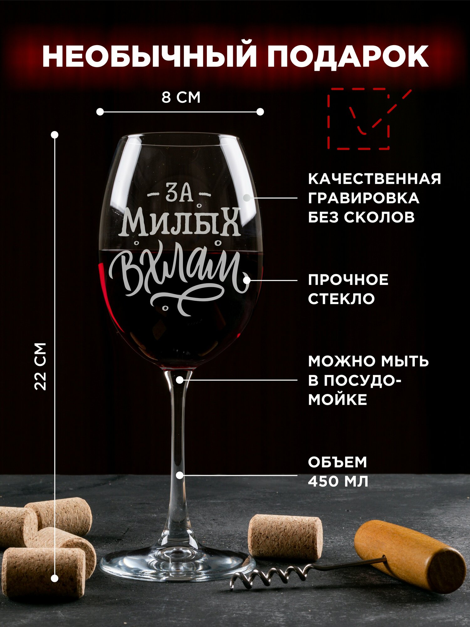 Купить Бокал с надписью "За милых Вхлам" для вина 450 мл. Подарок маме, бокал с гравировкой подруге, фужеры для вина LaserGlass