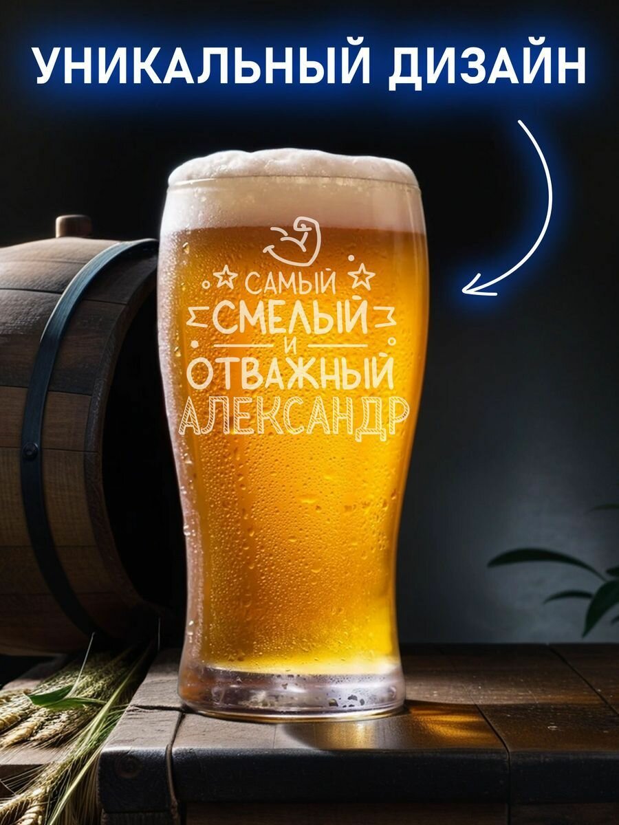 СохранитьБокал пивной с надписью "смелый и отважный" Александр интересное: