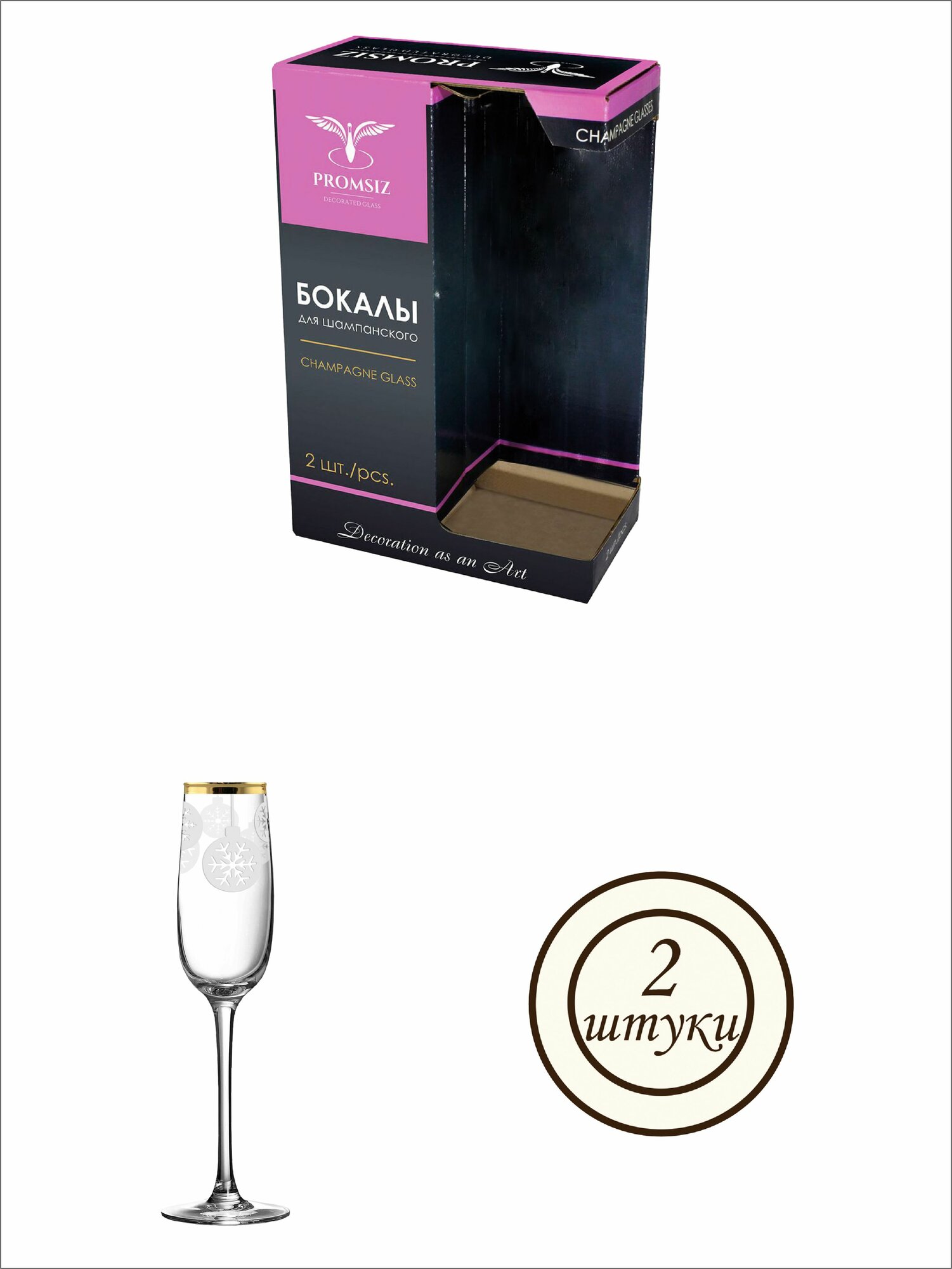 Новогодний подарочный набор бокалов / фужеров для шампанского с алмазной гравировкой PROMSIZ украшение, 175 мл, 2 шт. интересное:
