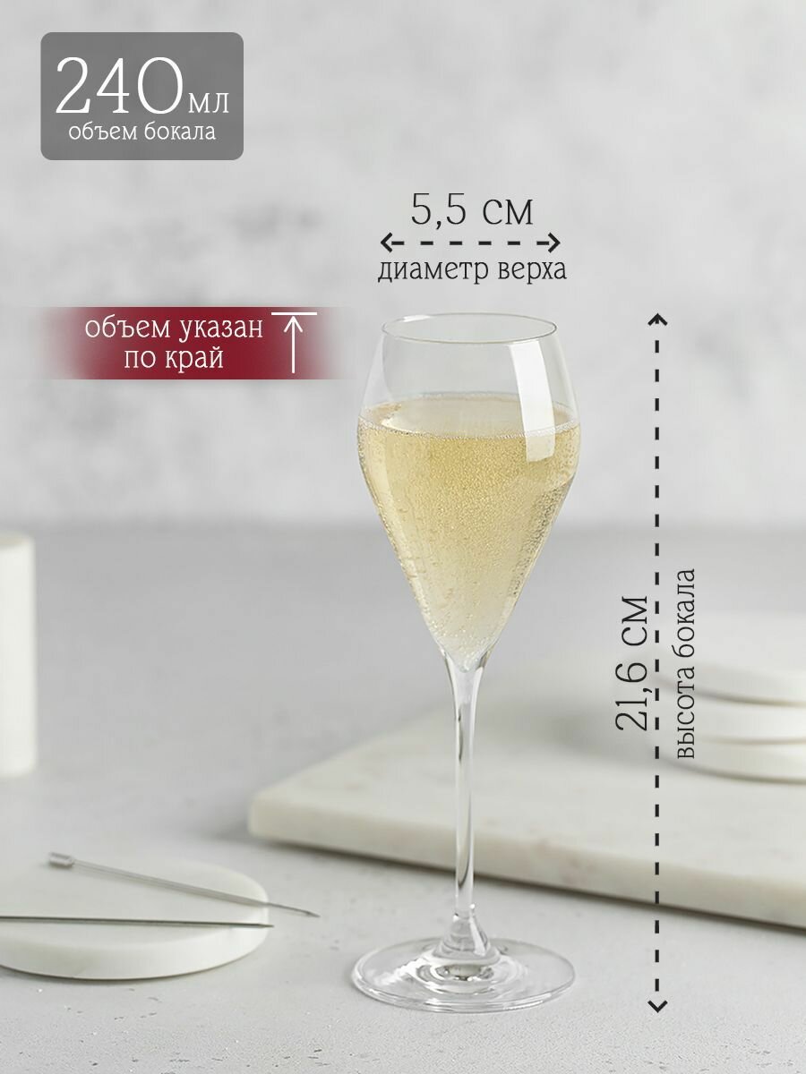 Rona Mode набор из 6 бокалов - флюте по 240 мл фужеров для шампанского и игристых вин, хрусталь