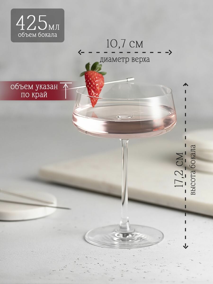 Rona Mode набор из 2 бокалов - креманок по 425 мл для шампанского и десертов, хрусталь
