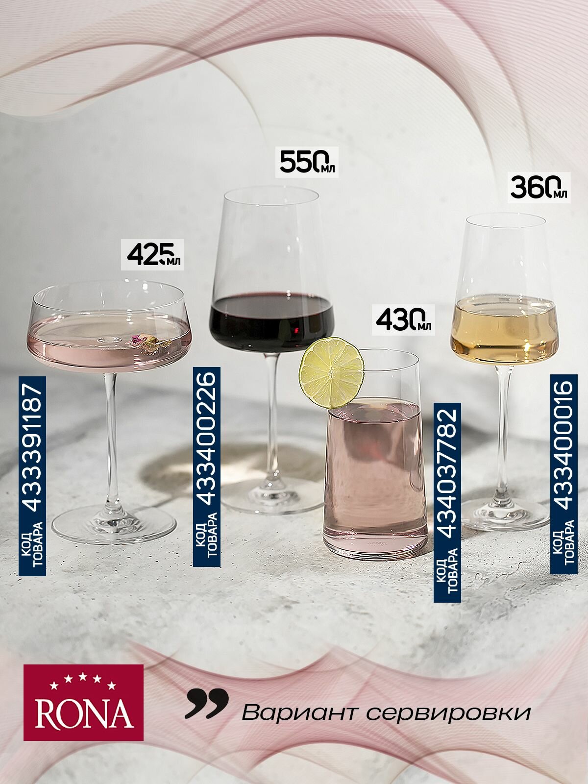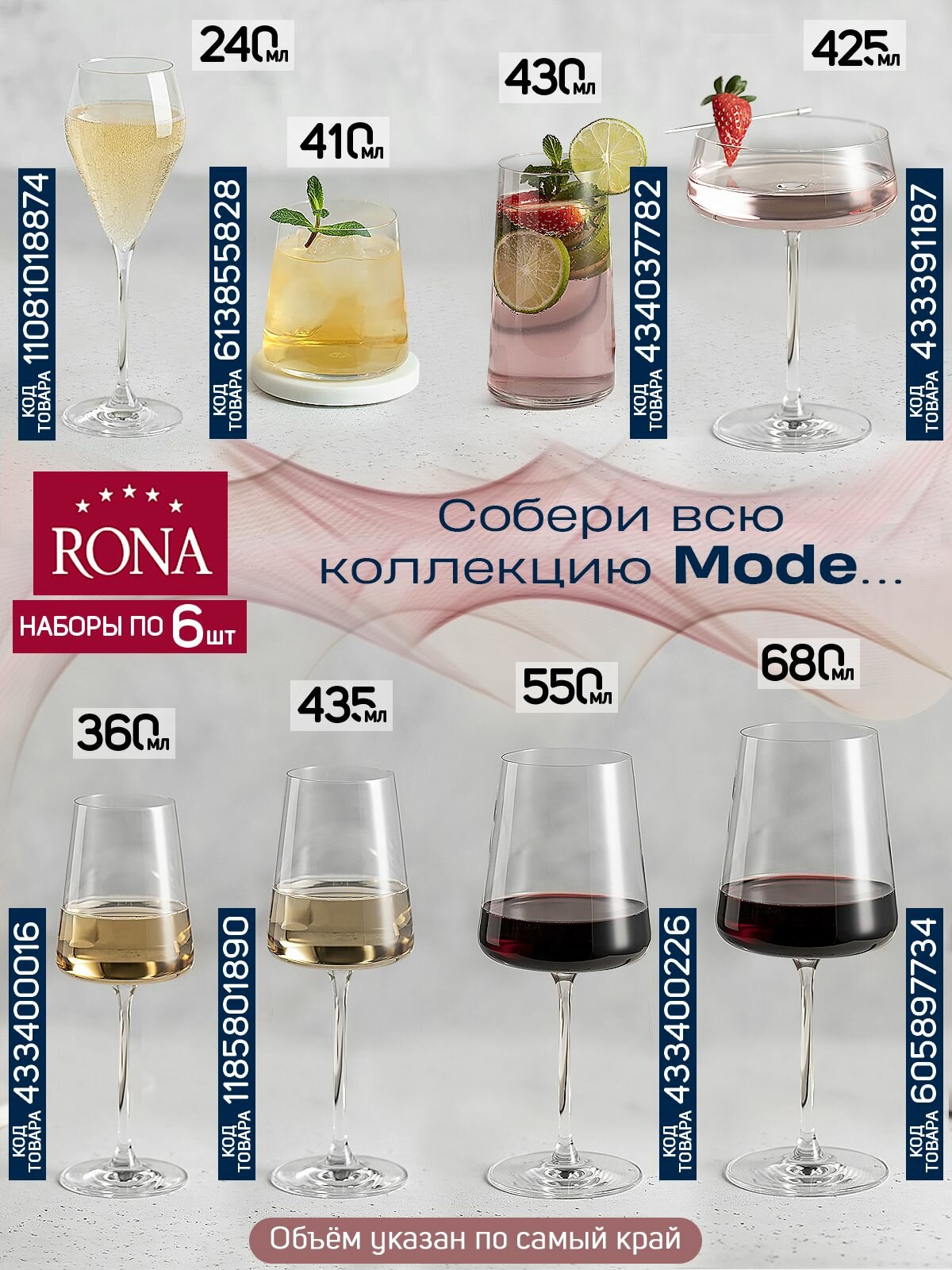 Rona Mode набор из 6 бокалов по 360 мл для красного и белого вина, игристых вин, хрусталь