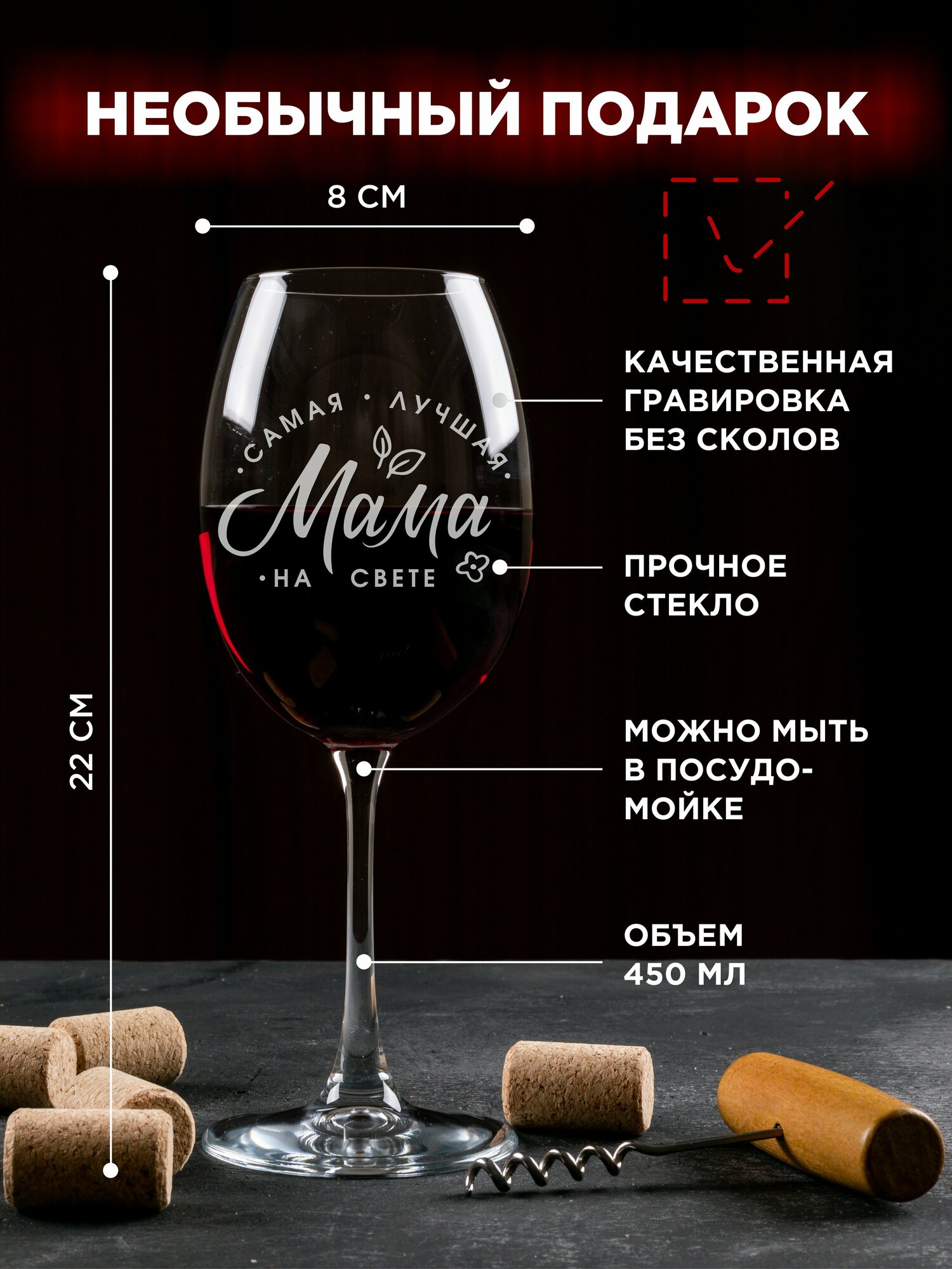 СохранитьБокал с надписью "Самая лучшая мама" для вина 450 мл. Подарок маме, бокал с гравировкой подруге, фужеры для вина LaserGlass интересное: