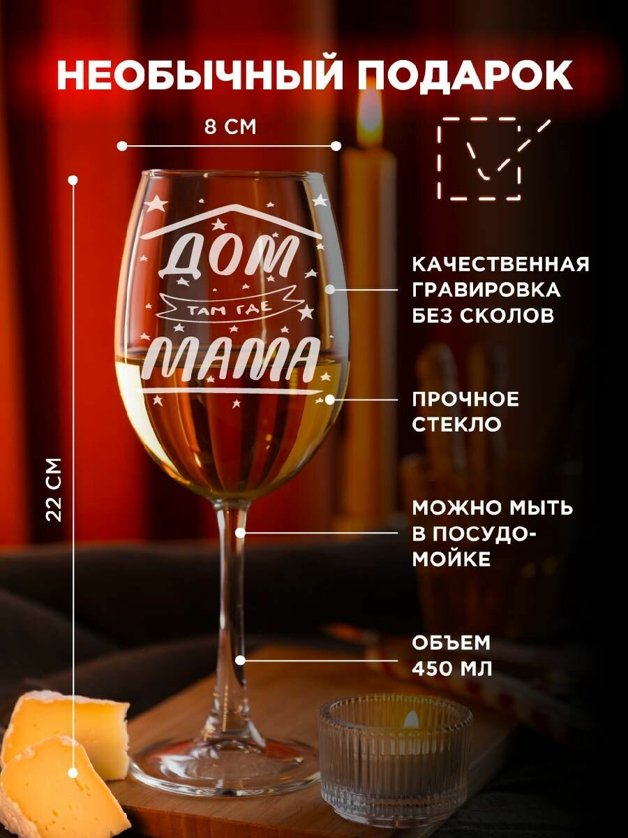 Бокал с надписью "Самая лучшая мама" для вина 450 мл. Подарок маме, бокал с гравировкой подруге, фужеры для вина LaserGlass