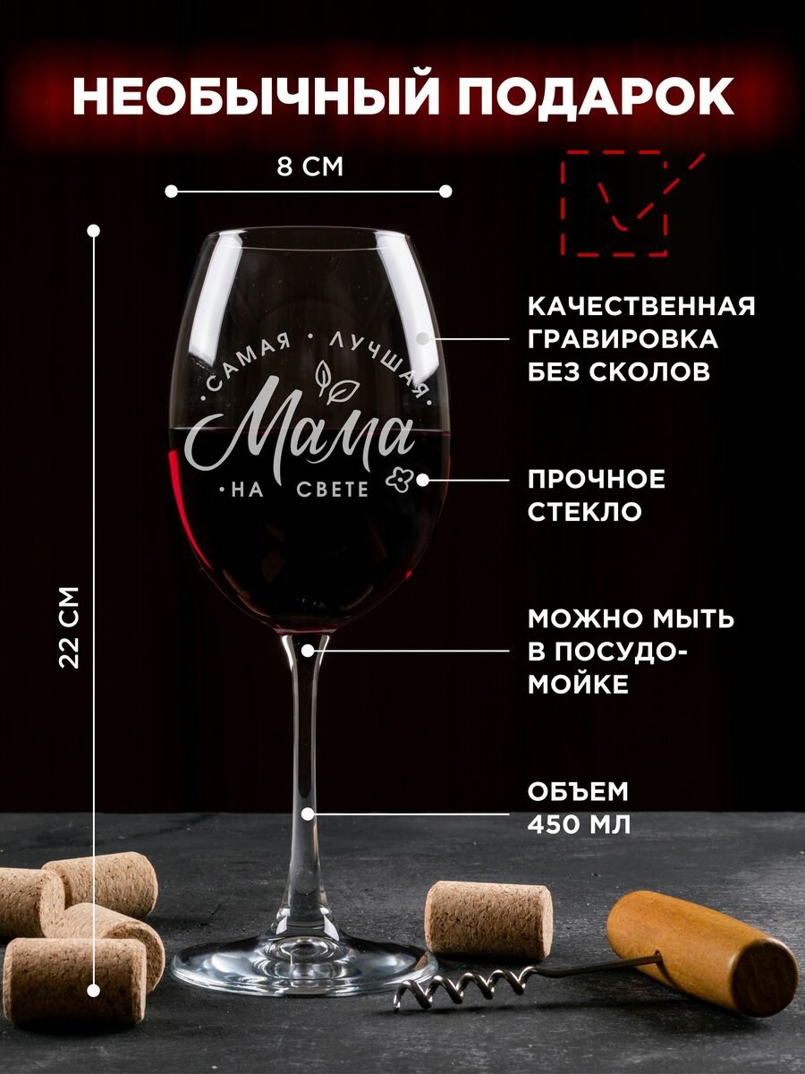 Бокал с надписью "Самая лучшая мама" для вина 450 мл. Подарок маме, бокал с гравировкой подруге, фужеры для вина LaserGlass