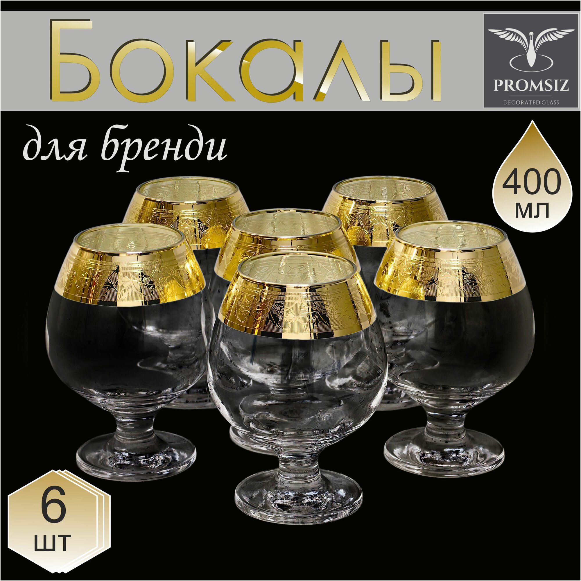 Купить Подарочный набор бокалов / фужеров для коньяка / бренди с алмазной гравировкой PROMSIZ канада, 400 мл, 6 шт.