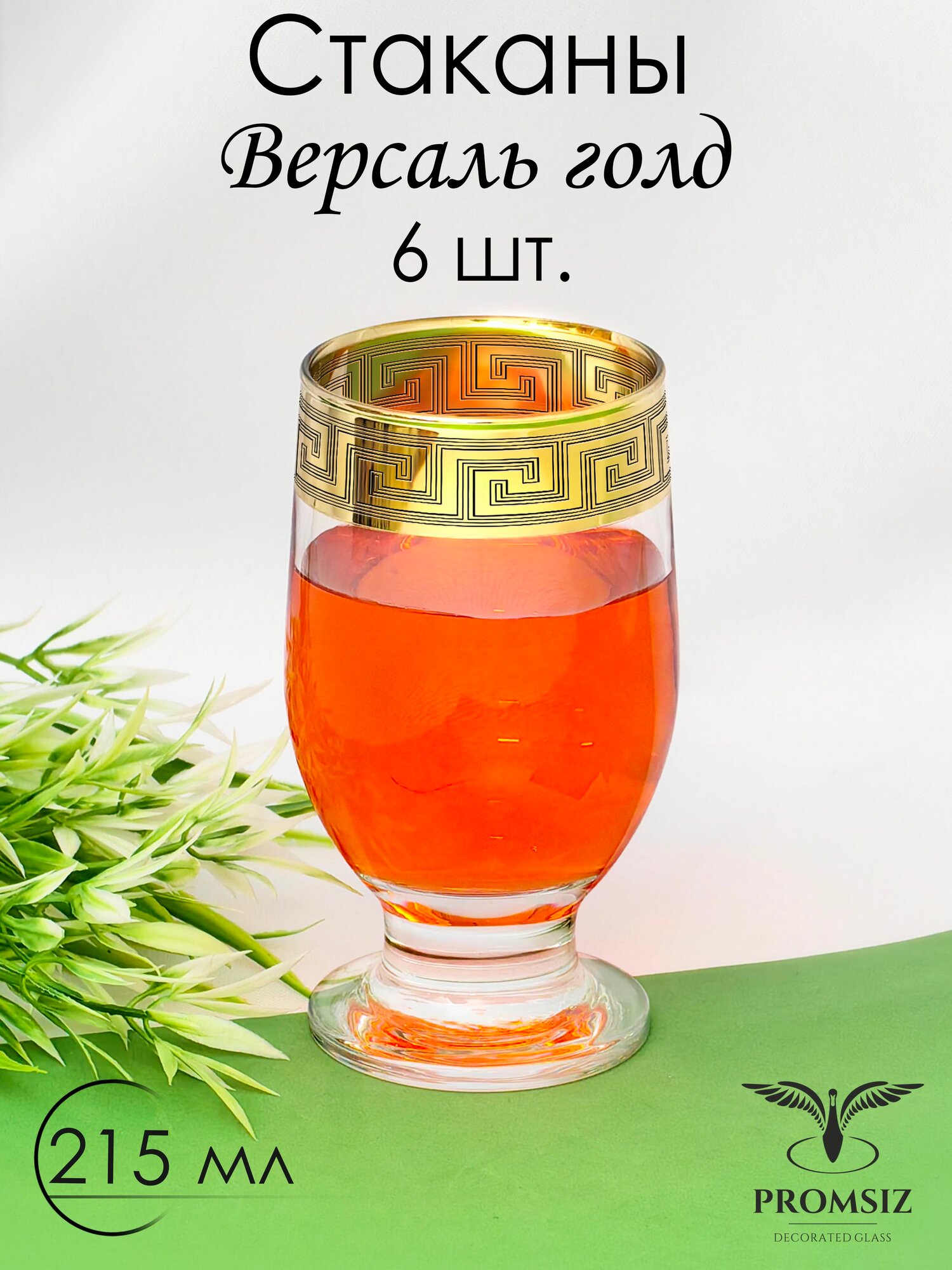 Подарочный набор стаканов для вина с алмазной гравировкой PROMSIZ версаль голд, 215 мл, 6 шт. интересное: