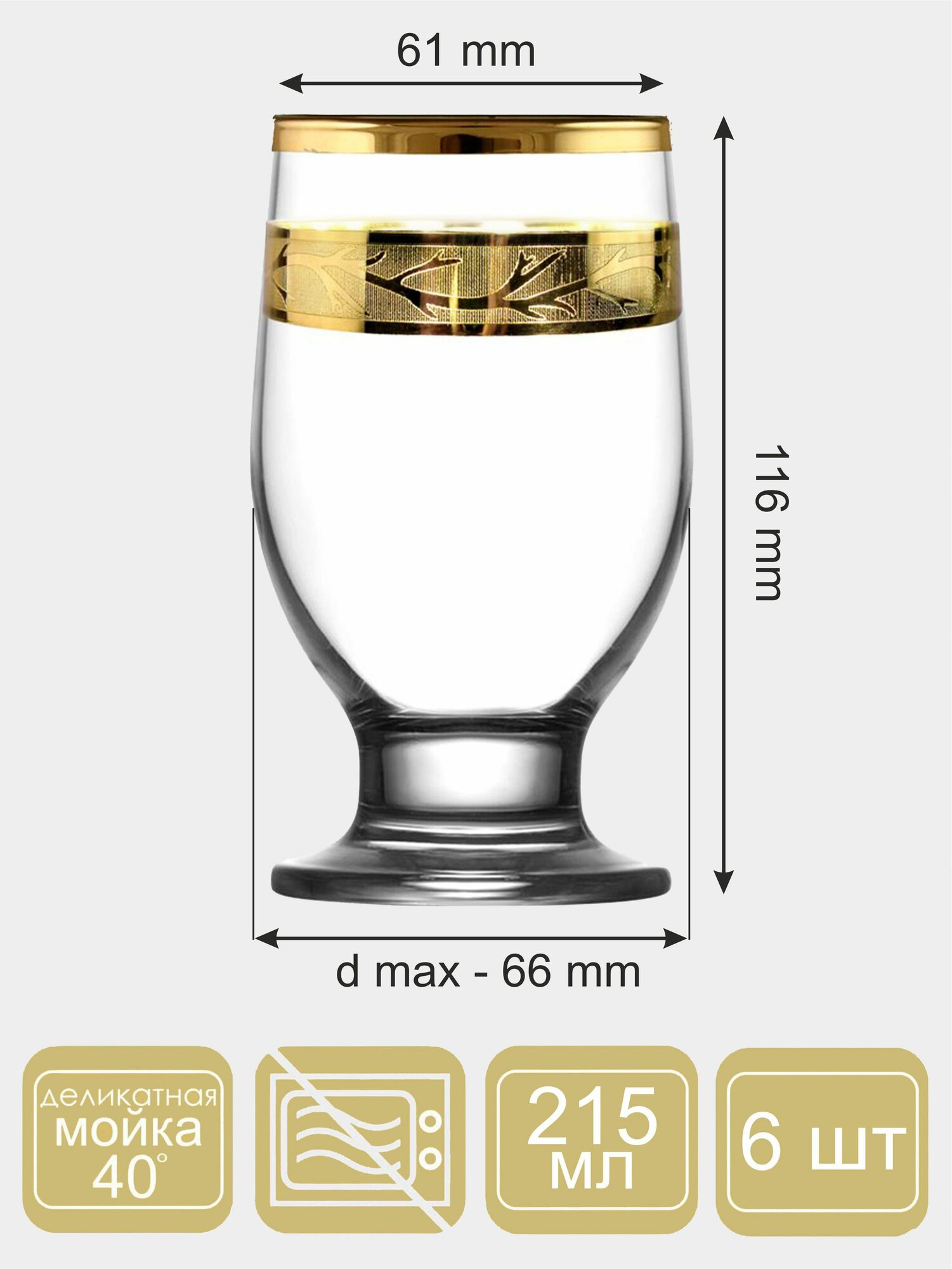 Подарочный набор стаканов для вина с алмазной гравировкой PROMSIZ версаль голд, 215 мл, 6 шт.