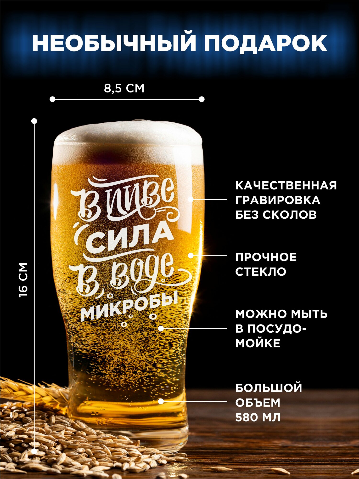 Купить Бокал для пива LaserGlass с гравировкой В пиве сила в воде микробы