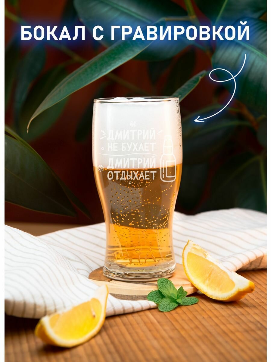 Купить Бокал пивной с надписью Дмитрий не бухает