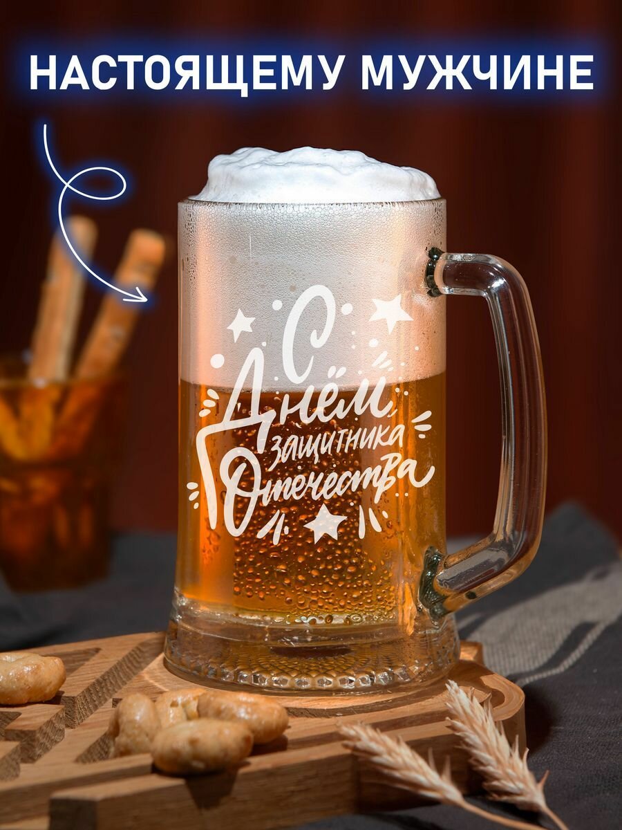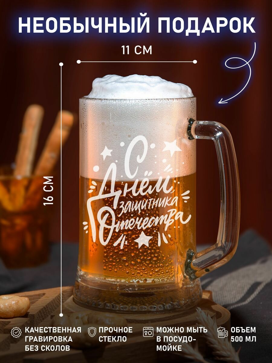 Бокалы пивной с надписью 500 мл с днем защитника отечества