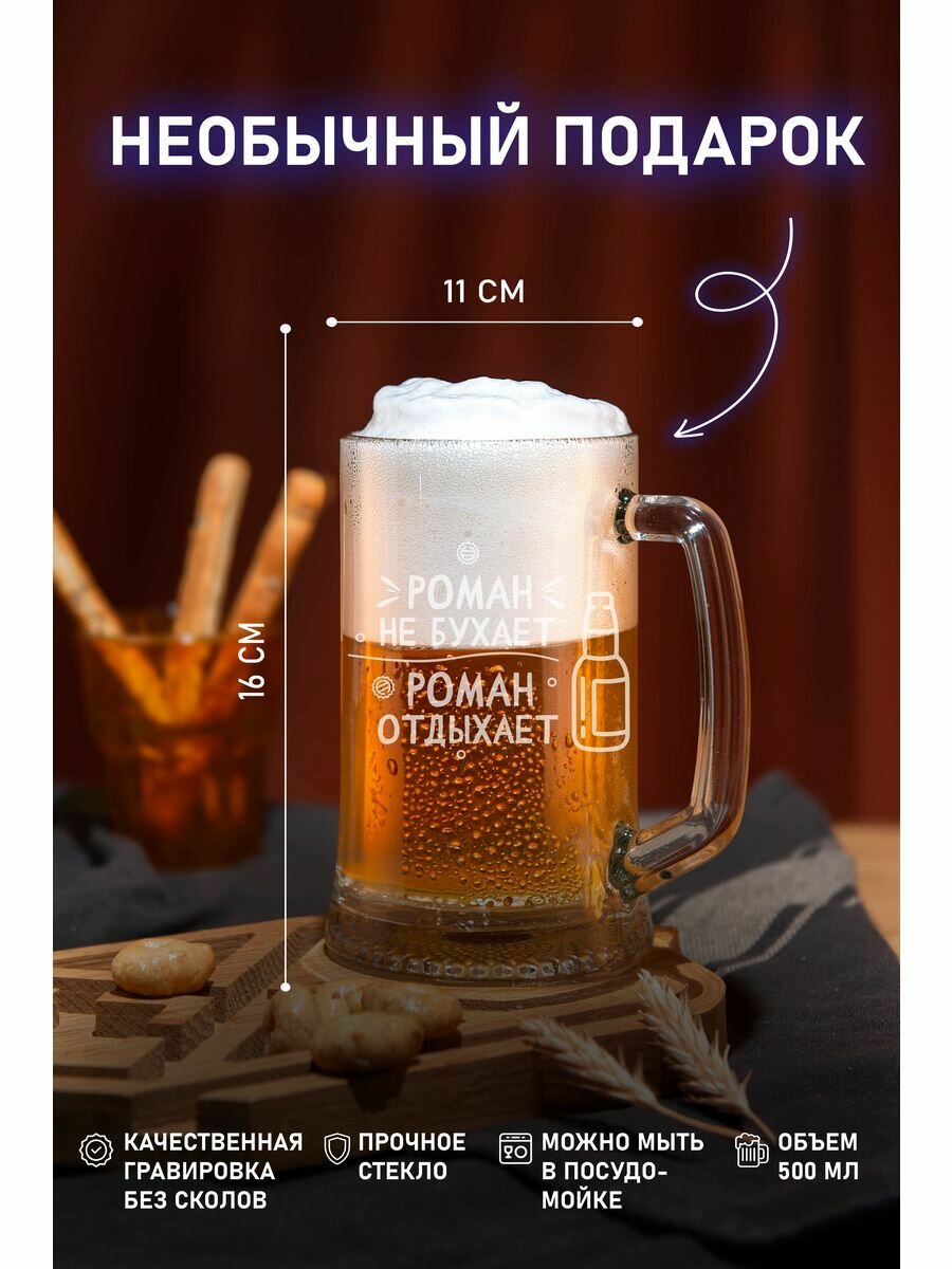 Кружка пивная с гравировкой Александр не бухает