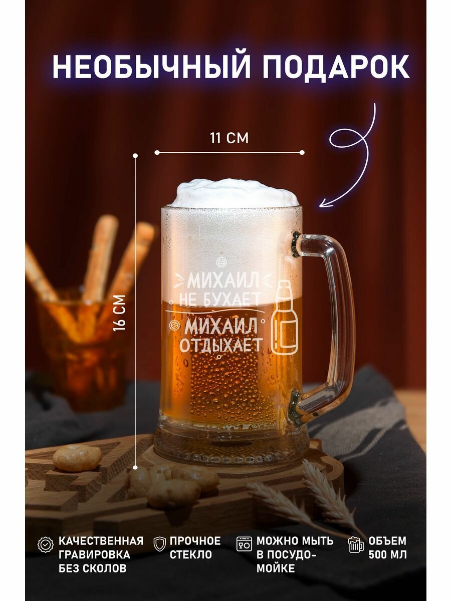 СохранитьИменной пивной бокал для Михаила интересное: