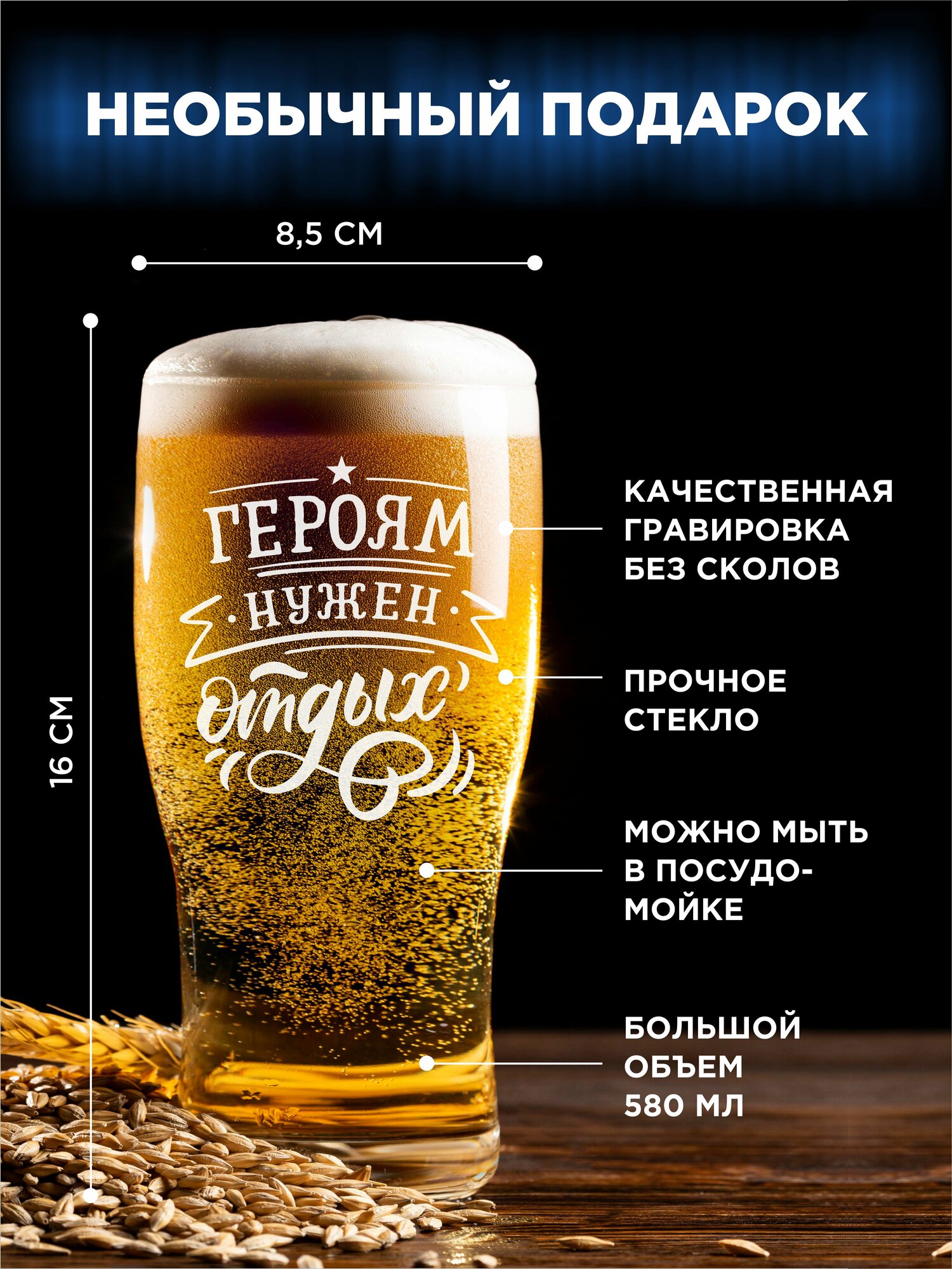 СохранитьБокал для пива LaserGlass с надписью героям отдых интересное: