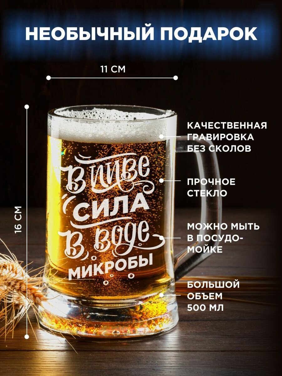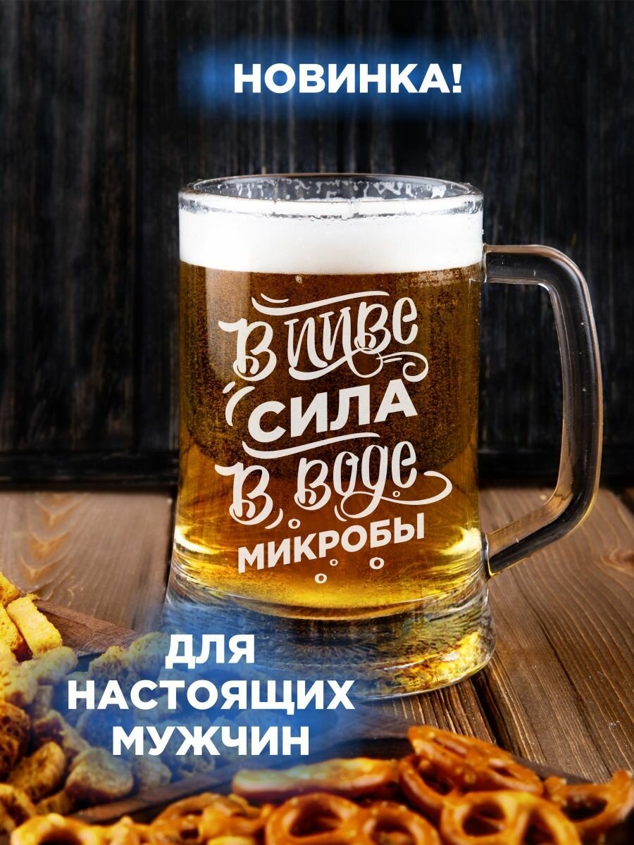 Бокал для пива LaserGlass с гравировкой В пиве сила в воде микробы