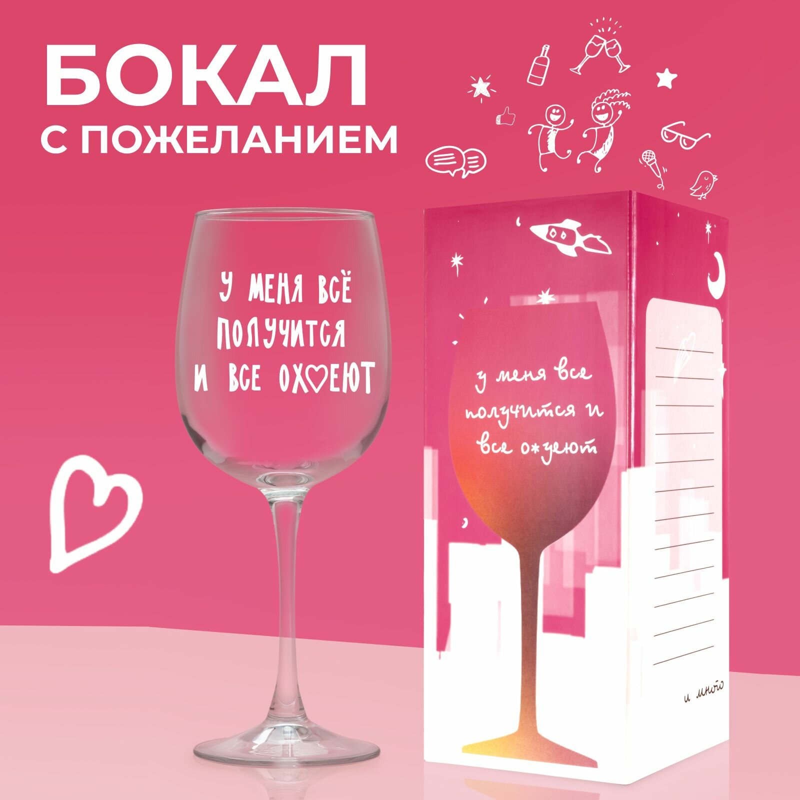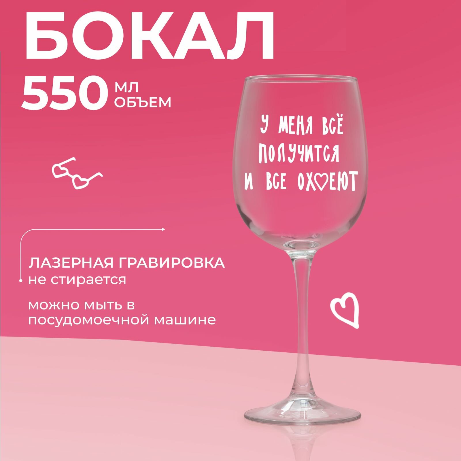 Купить Бокал для вина с надписью "У меня все получится и все ох*еют", собери набор бокалов для вина "много"