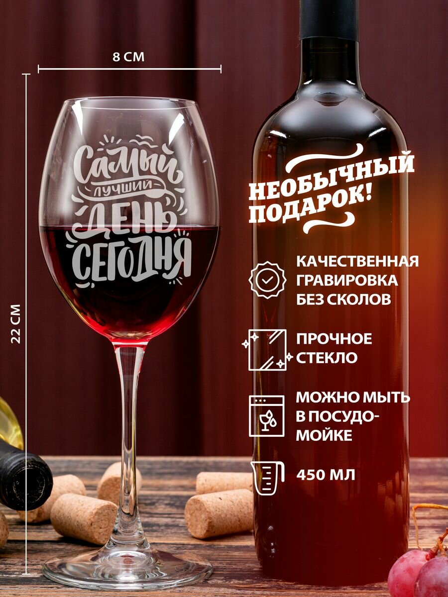 Бокал для вина LaserGlass с надписью Сегодня я благобухаю
