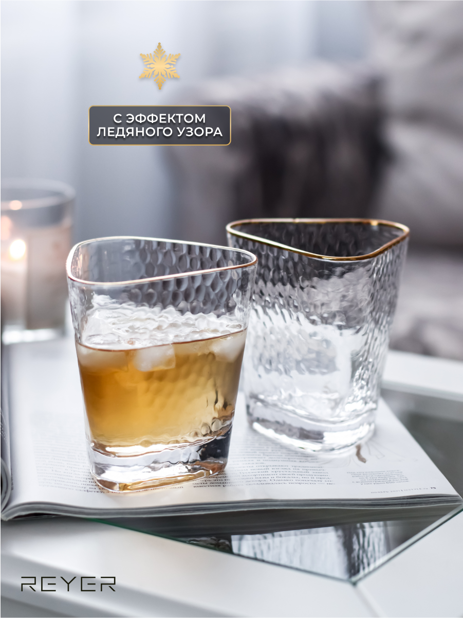 Бокалы для виски, воды, сока, коктейлей Reyer 2 шт, 300 мл, ручная работа, закалённое стекло интересное: