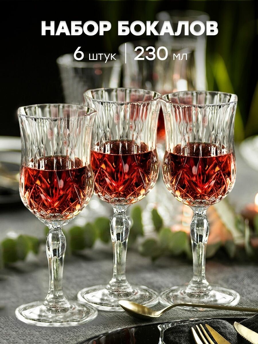 Набор бокалов для вина коктейлей воды, стаканы фужеры на ножке, 230 мл, 6 штук интересное: