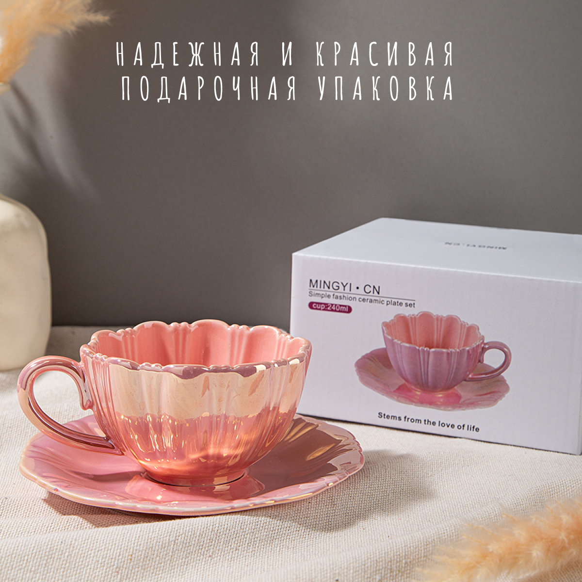 Купить Кружка с блюдцем для чая и кофе, чайная пара жемчужная