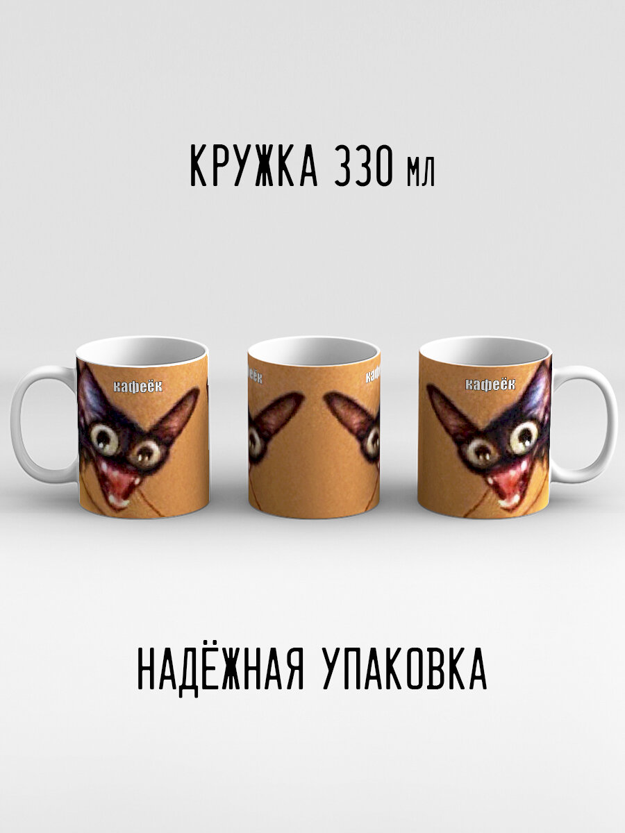 Купить Кружка с приколом мем с котиком Кофе Кафеек с двух сторон улыбается