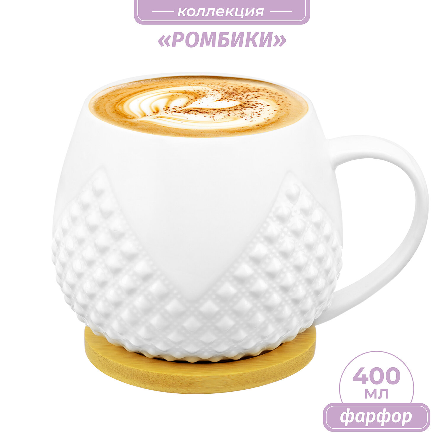 Кружка / чашка / для чая, кофе, капучино 400 мл 12,5*10*9,7 см "Ромбики" бочонок + крышка-подставка интересное: