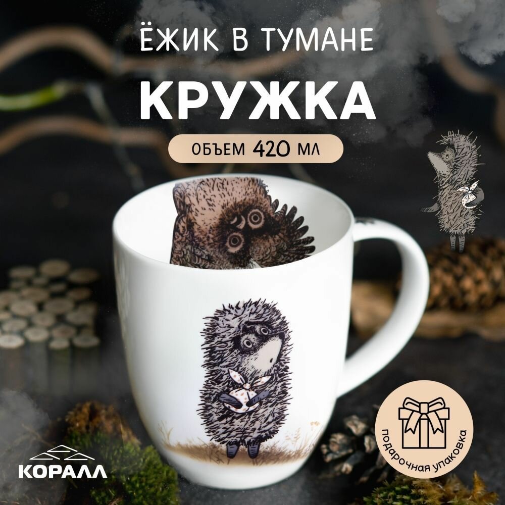 Кружка большая белая с принтом Ежик в тумане 500 мл в подарочной упаковке Коралл