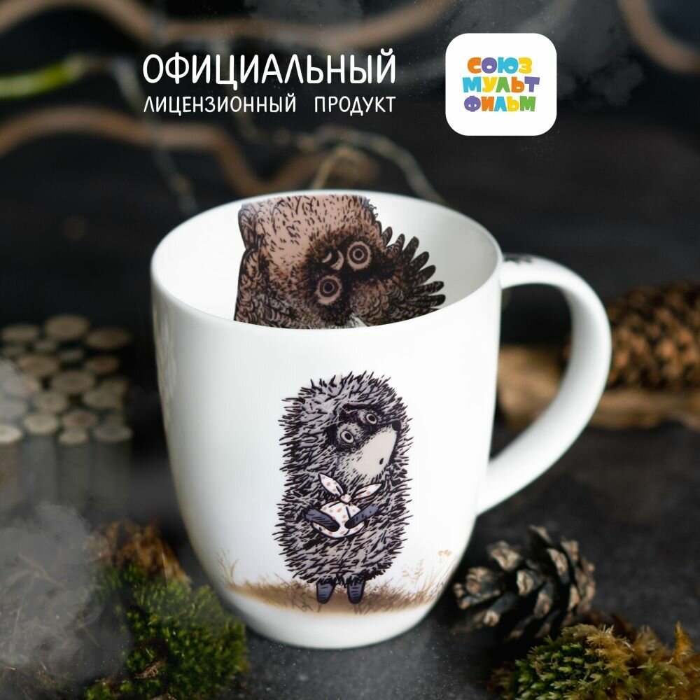Кружка большая белая чашка для чая кофе какао с принтом Ежик в тумане 420мл в подарочной упаковке (Ежик и сова)