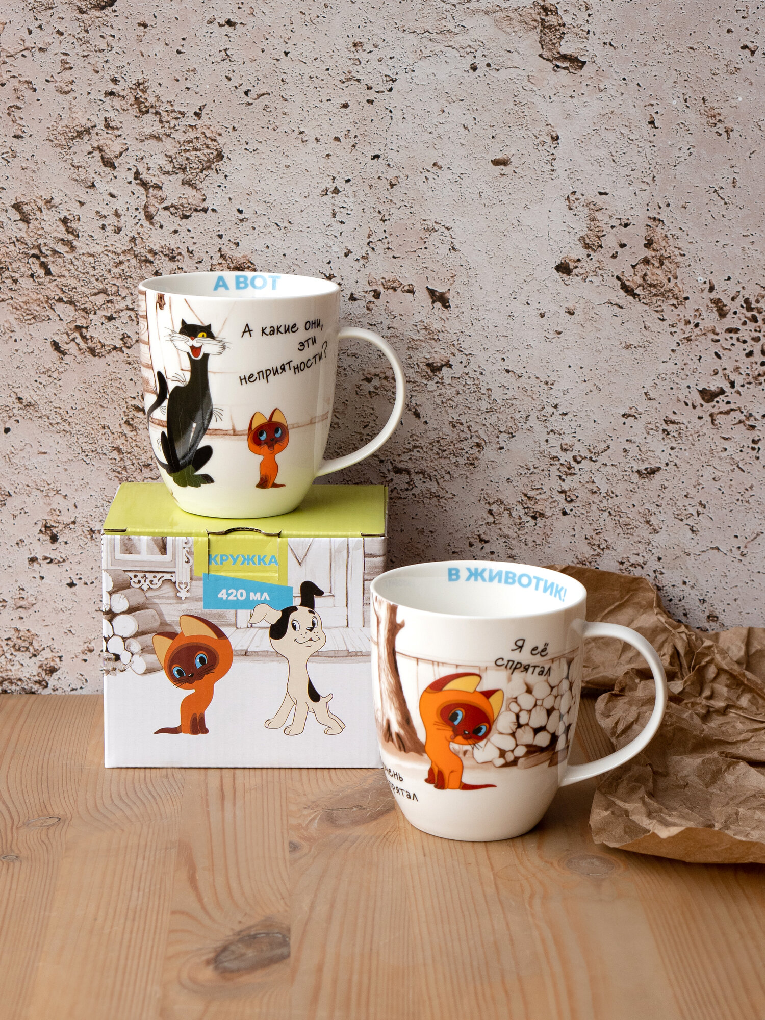 Кружка большая белая фарфор 420 мл. в подарочной упаковке Котенок Гав " Неприятности"