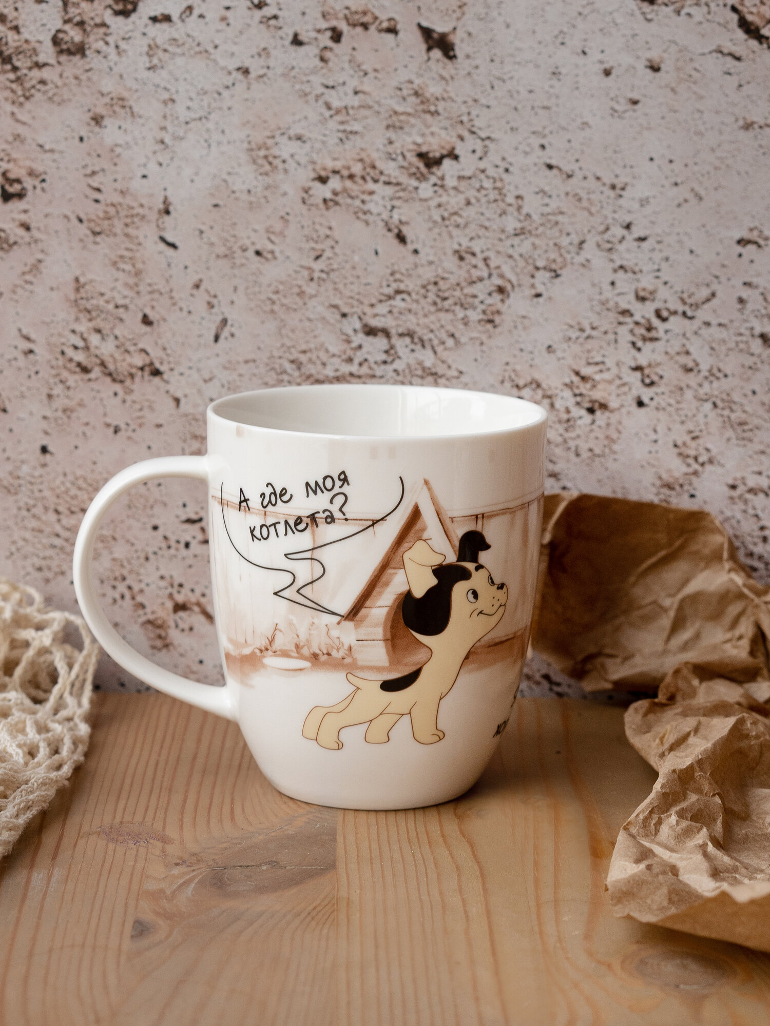 Кружка большая белая фарфор 420 мл. в подарочной упаковке. Жил-был пес! принт "Вечно голодный"
