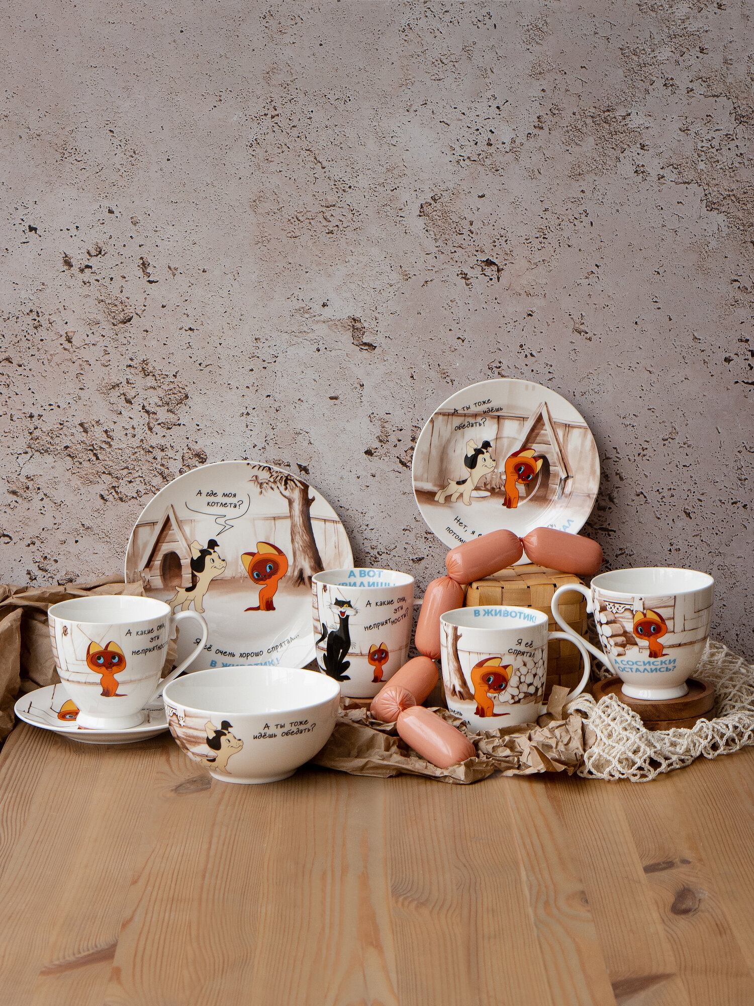 Набор кружек фарфор 420 мл. 4 шт. "Бременские музыканты" чашки для чая в индивидуальной подарочной упаковке