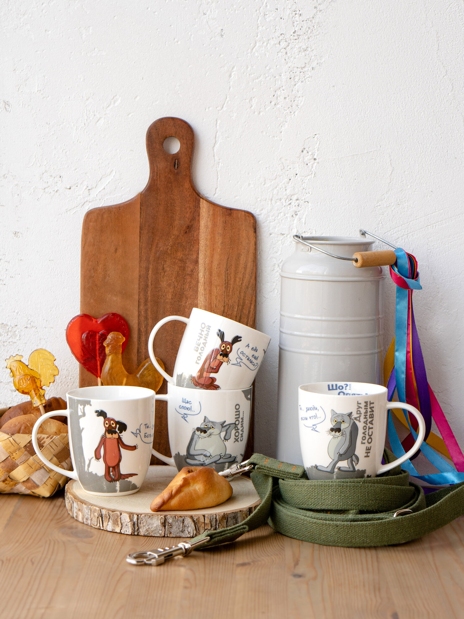 Набор кружек фарфор 420 мл. 4 шт. "Бременские музыканты" чашки для чая в индивидуальной подарочной упаковке