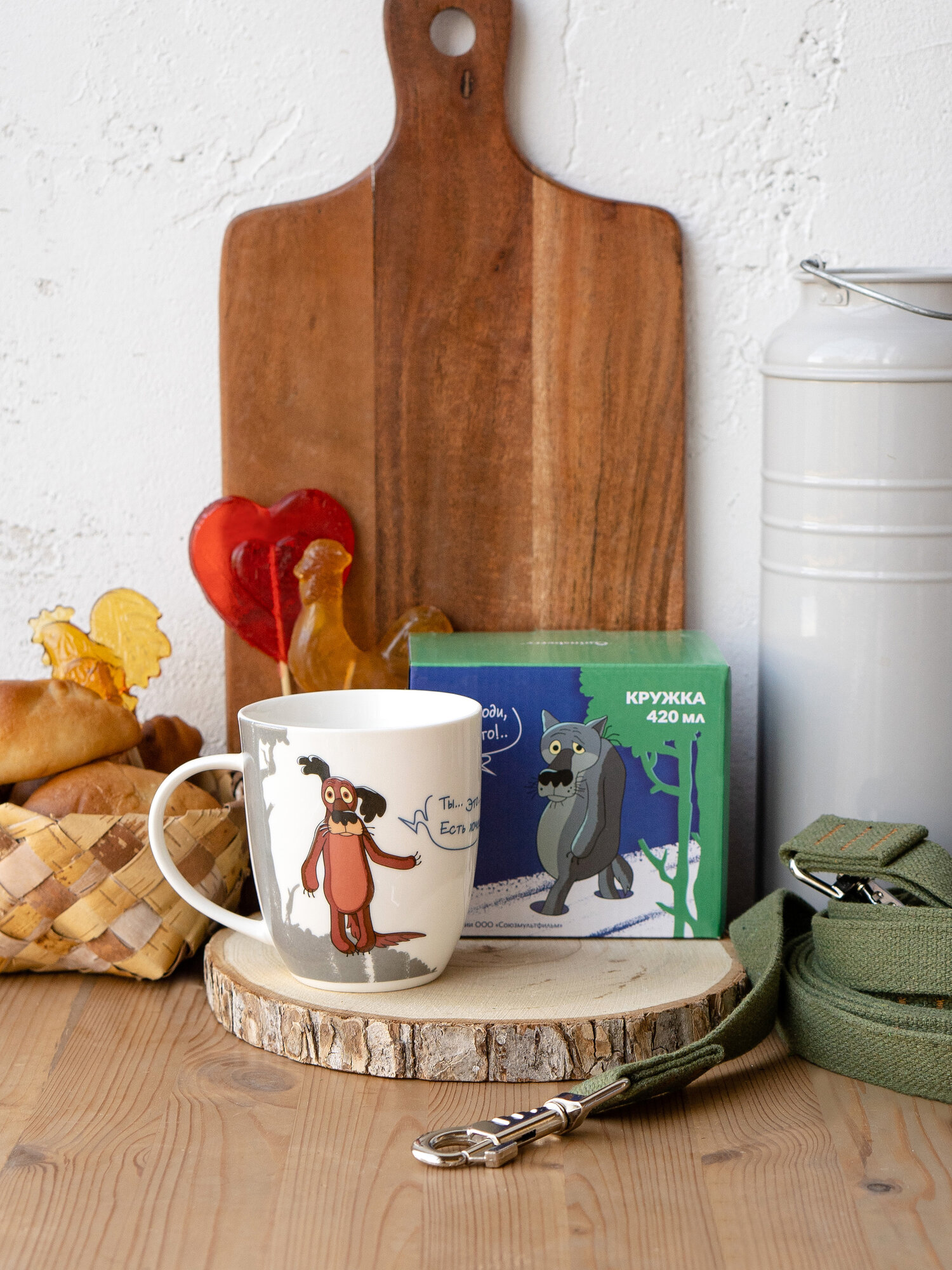 Кружка большая белая фарфор 500 мл. "Ну, Погоди! " в подарочной упаковке. Коралл