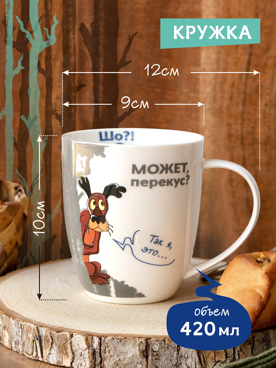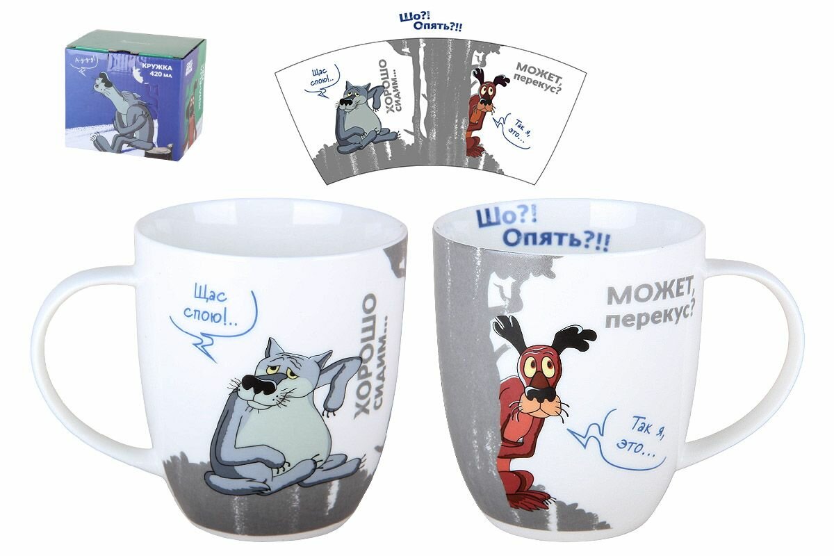Кружка большая белая фарфор 500 мл. "Ну, Погоди! " в подарочной упаковке. Коралл