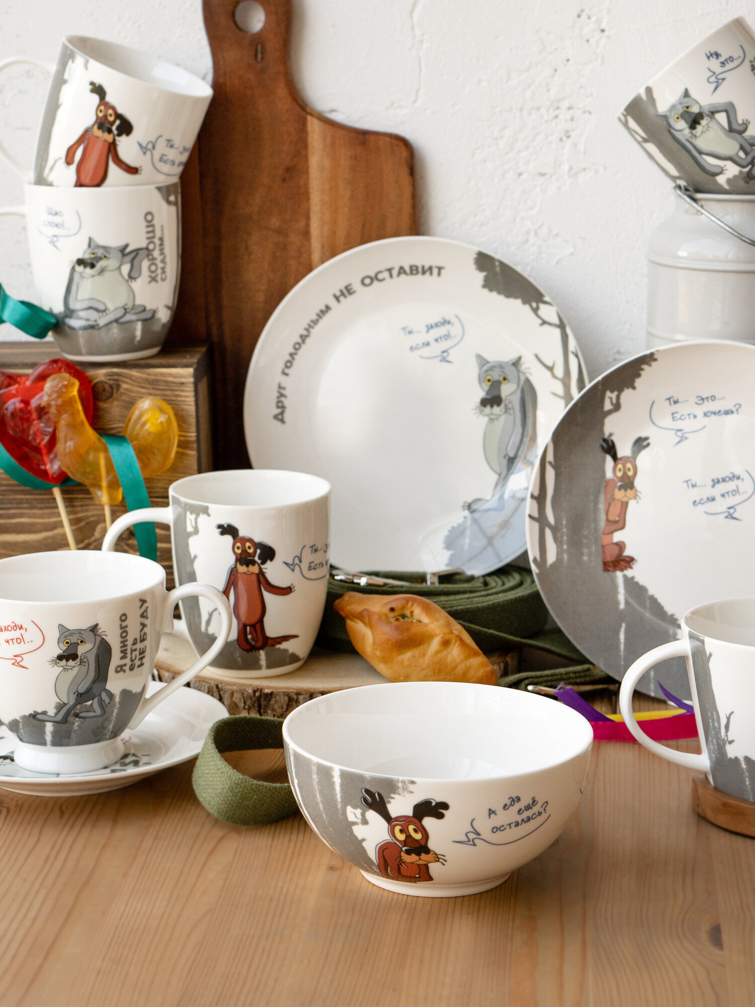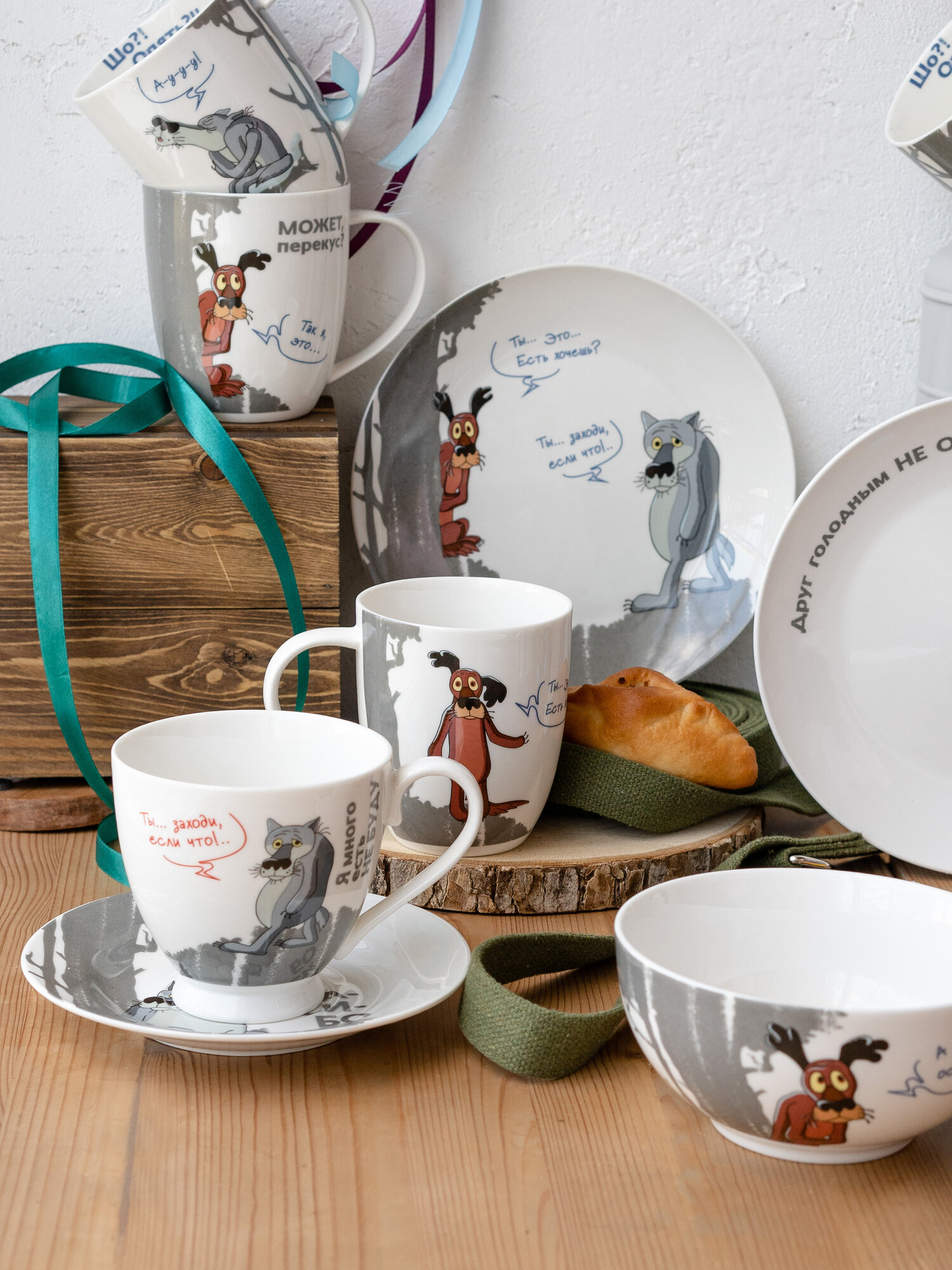 Набор кружек фарфор 420 мл. 4 шт. "Ну, Погоди!" чашки для чая в индивидуальной подарочной упаковке