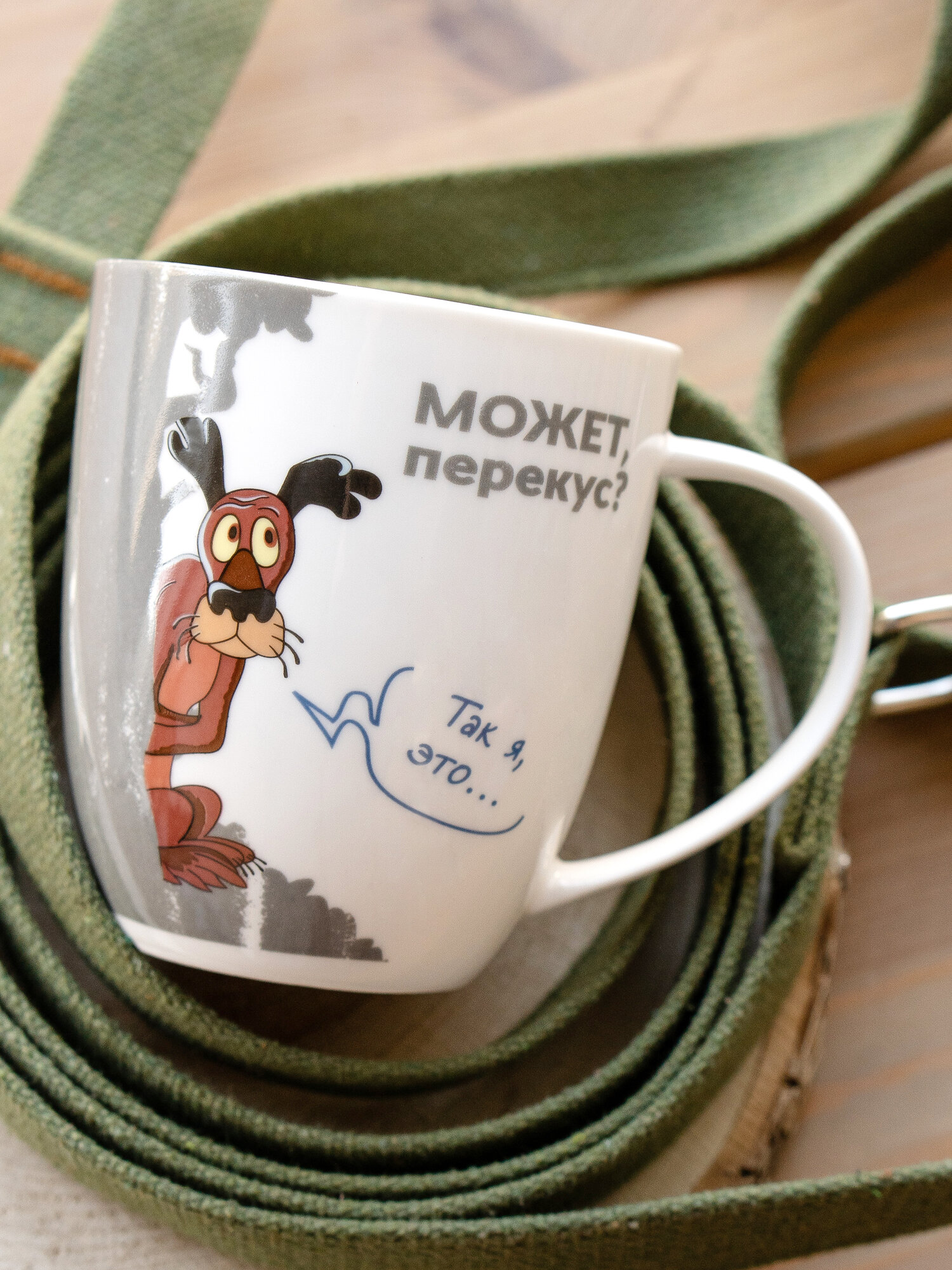 Кружка большая белая фарфор 420 мл. в подарочной упаковке. Бременские музыканты принт "Петь птицы перестали."