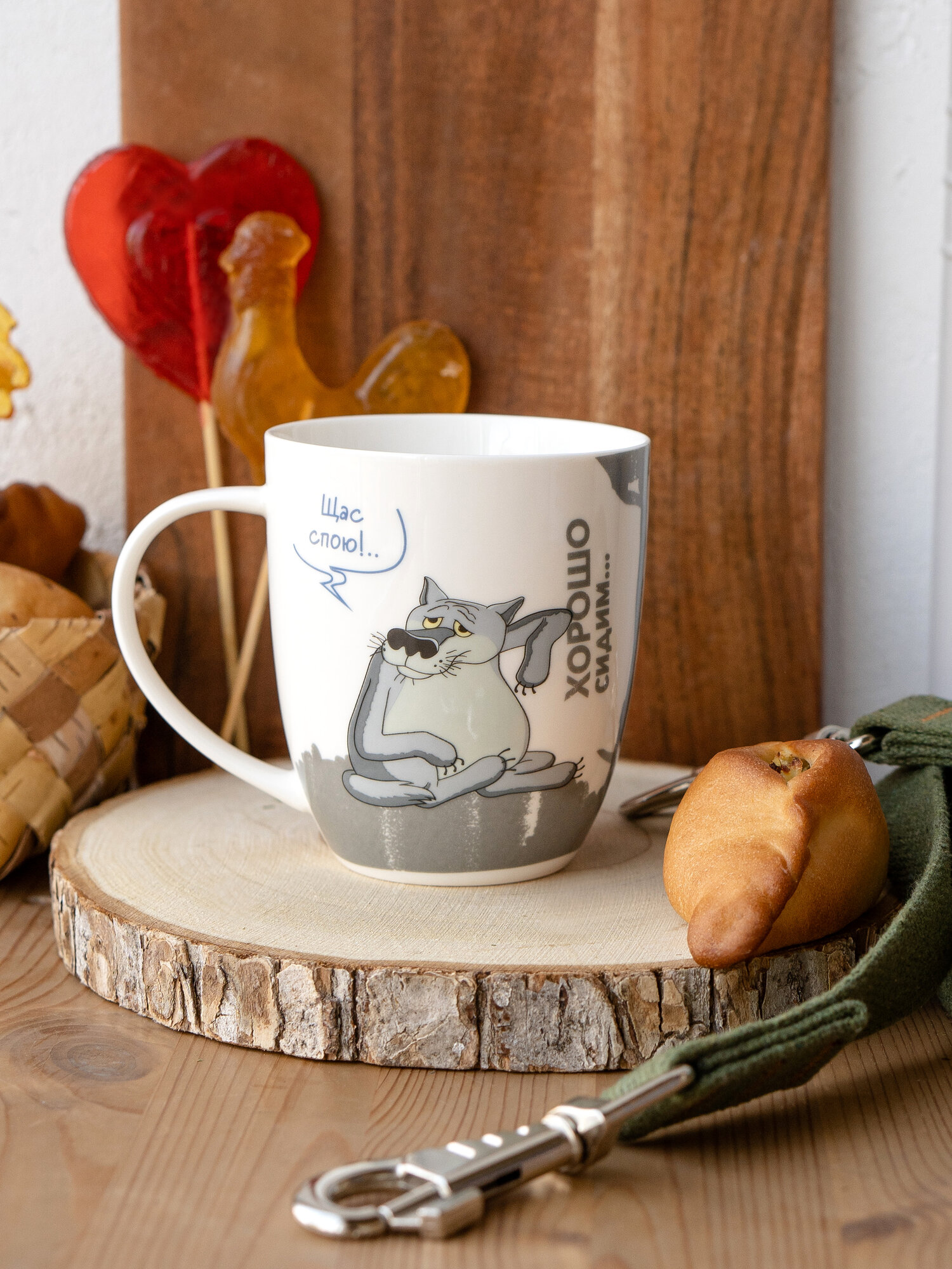 Кружка большая белая фарфор 420 мл. в подарочной упаковке. Бременские музыканты принт "Ничего на свете лучше нету."