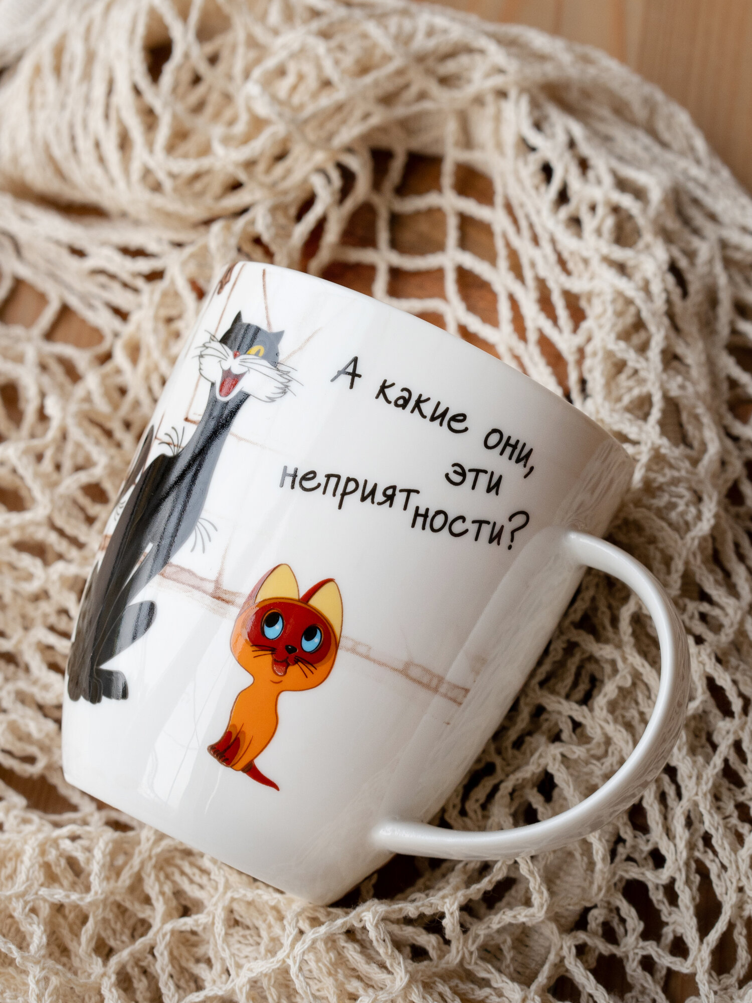СохранитьКружка большая белая фарфор 420 мл. в подарочной упаковке Котенок Гав " Неприятности" интересное: