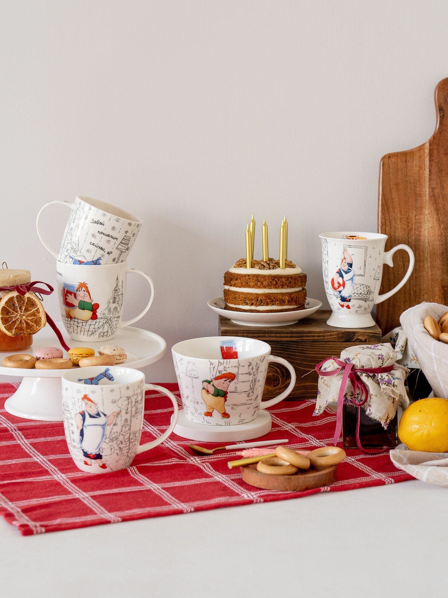 Набор кружек фарфор 420 мл. 4 шт. "Бременские музыканты" чашки для чая в индивидуальной подарочной упаковке